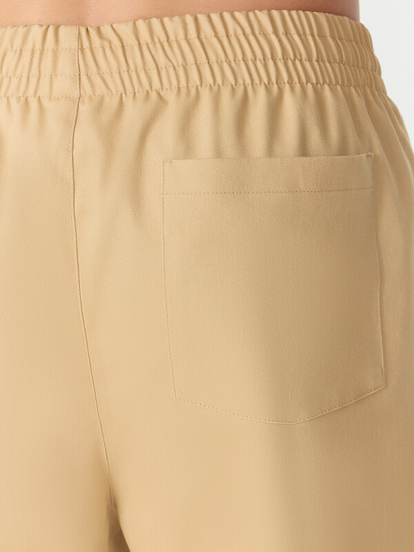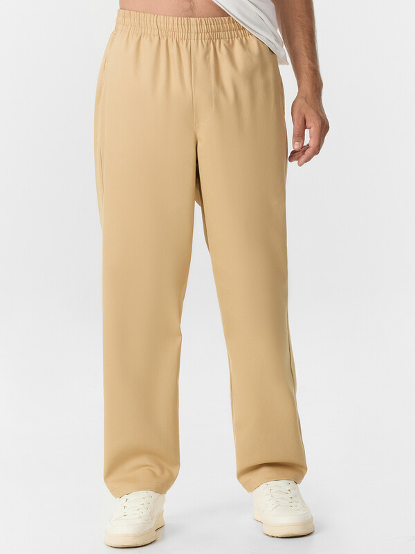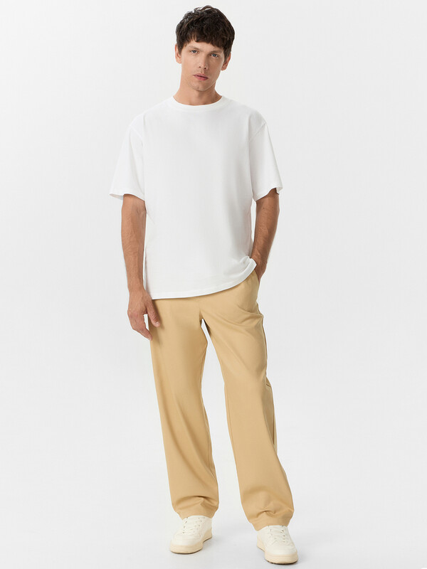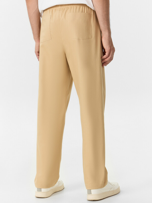 Брюки прямые, посадка средняя. Пояс цельнокроёный с эластичной тесьмой внутри. С внутренней стороны пробиты петли и втянут шнур с застроченными концами (10PXC-1). На левой детали переда имитация гульфика. По переду карманы с отрезными бочками. Нижние срезы брюк обработаны швом вподгибку. На деталях спинки накладные карманы. 67% хлопок; 31% полиэстер; 2% спандекс Комментарии к товару