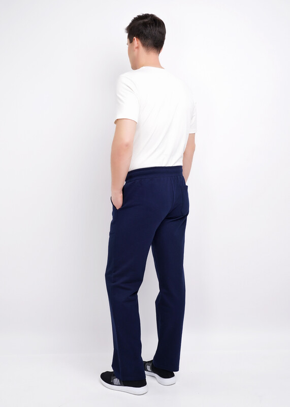 Брюки с отрезным поясом из кашкорсе, двумя карманами в боковых швах и одним накладным карманом сзади.