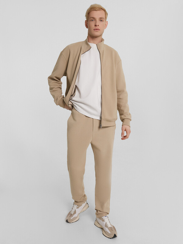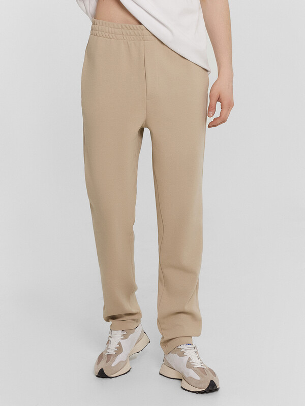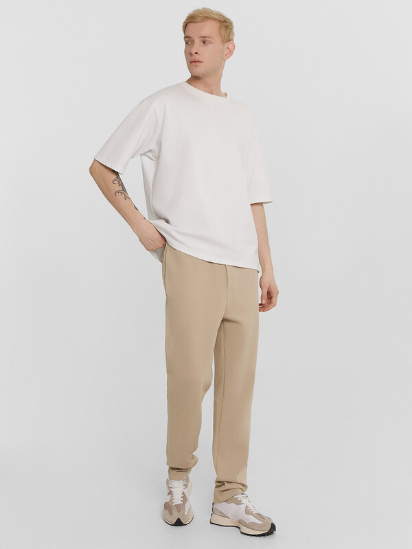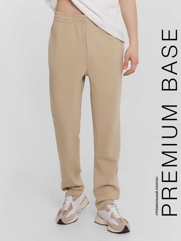 Мужские брюки с классической линией талии, выполненные из высококачественного интерлока. Этот материал обеспечивает превосходный комфорт и долговечность, делая изделие идеальными для повседневной носки. Силуэт прямой, штанины немного заужены к низу, что придает современный и стильный вид. В поясе эластичная тесьма и регулировочный шнурок-завязка обеспечивают идеальную посадку и комфорт. А удобные боковые карманы добавляют функциональности и практичности. Дополните образ подходящей толстовкой для завершения стильного и спортивного образа.