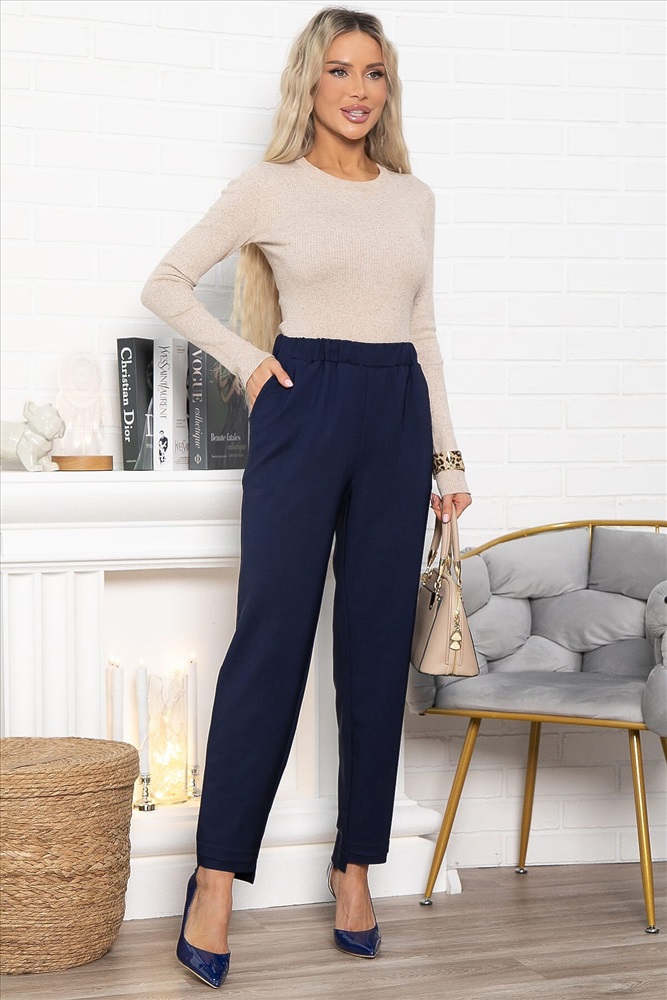 ID товара: 1230746 Состав: 95% полиэстер, 5% эластан Сезон: Весна/Лето Фасон: Зауженные Стиль: повседневный Страна бренда: Россия Страна производства: Россия Состав : 95% полиэстер, 5% эластан Материал : костюмный Цвет : темно-синий Принт : отсутствует Карманы : есть Резинка в поясе : да Вид застежки : без застёжки Тип посадки брюк : высокая Пояс брюк : притачной Крой брюк : зауженный Фасон брюк : классические Декоративные элементы : отсутствуют Обхват бёдер : 46 - 100, 48 - 104, 50 - 108, 52 - 112, 54 - 116 Длина готового изделия по внутреннему шву : 46-71 см, 48-71 см, 50-71 см, 52-71 см, 54-71 см Длина готового изделия по боковому шву : 46-97 см, 48-97 см, 50-97 см, 52-98 см, 54-98 см Подбирайте брюки не только по моде, но и по себе. Фасон должен подходить не только к фигуре, но и к ритму жизни. Прямые брюки, плавно зауженные к низу от бедра, с ассиметричным низом подойдут как для офисного стиля, так и для повседневных прогулок. Изделие с карманами, пояс на резинке, по передней половинке брюк по низу застрочены складки. Это ваши брюки на каждый день! Внимание! Рекомендуем ориентироваться на размерную сетку и выбирать свой привычный размер, согласно размерной таблице. *Допуск отклонения длины при массовом производстве 1-3 см является нормой. Уход за изделием: Ручная стирка или стирка в машине при температуре до 30 °C, деликатный режим. Не использовать отбеливатели. Разрешена глажка при температуре до 110 °C. При глажке использовать специальную насадку на подошве утюга, гладить с паром. Не замачивать и не выжимать. Стирать изделие наизнанку, отдельно от других вещей. Комментарии к товару