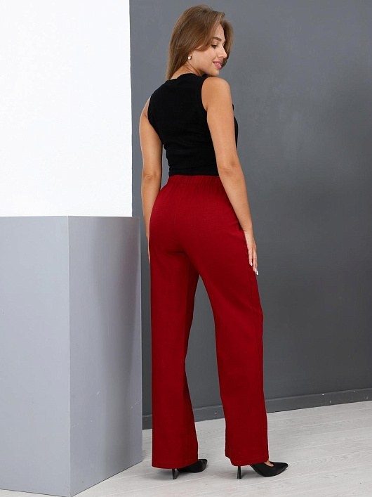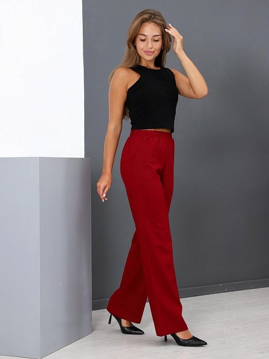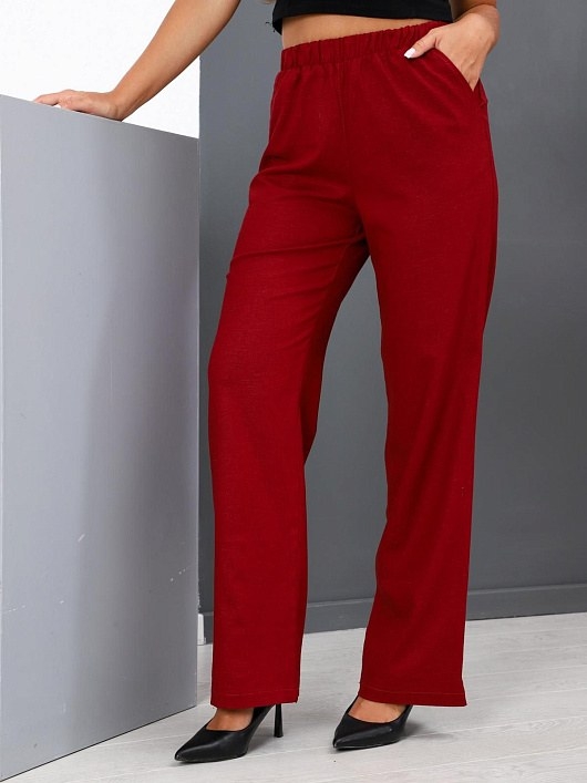 Женские брюки из льна широкие от бедра. С карманами. Пояс притачной.