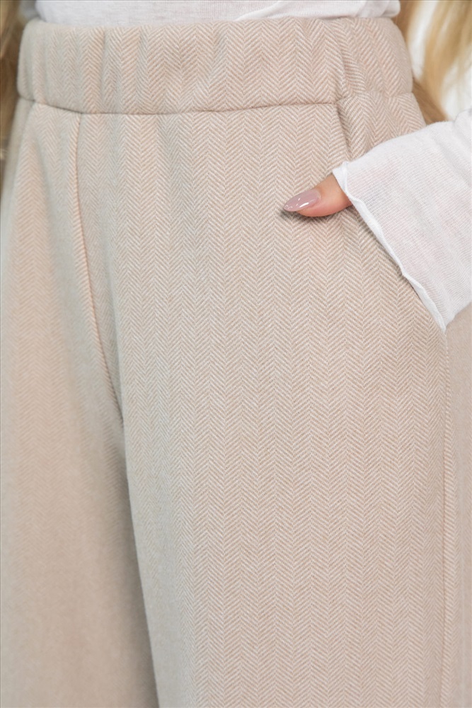 В прохладную погоду эти брюки станут идеальным выбором для тех, кто ценит комфорт и стиль. Изготовленные из мягкой ткани с добавлением шерсти, они согревают и дарят уют на протяжении всего дня. Модель подходит как для деловых образов, так и для повседневных комплектов. Универсальный бежевый цвет позволяет легко сочетать брюки с разными верхами и аксессуарами, создавая стильные и удобные образы для любого случая. Выбирайте тепло и стиль в одном изделии!