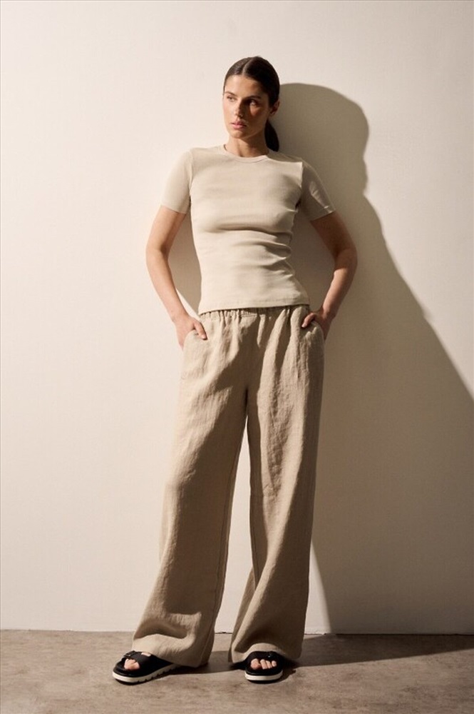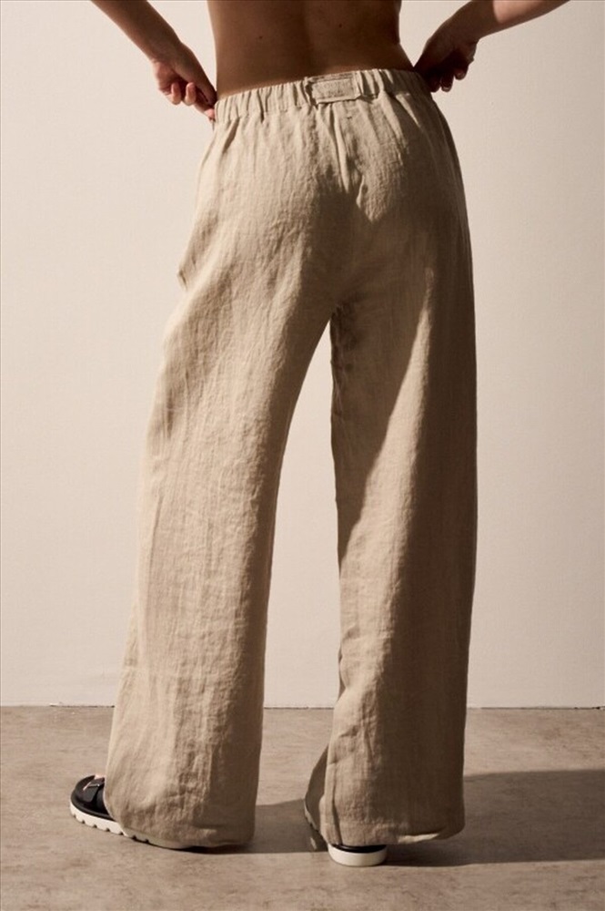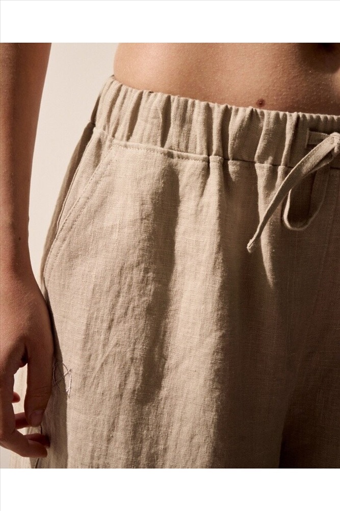 ID товара: 1093616 Состав: Лен 100% Сезон: Весна/Лето Длина: Полная Фасон: Широкие Вид застежки: Шнурок Рисунок: нет Тип карманов: Втачные Основная ткань: Лен Стиль: Повседневный Страна бренда: Россия Страна производства: Россия Брюки PALAZZO из льна. Комментарии к товару