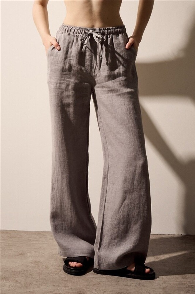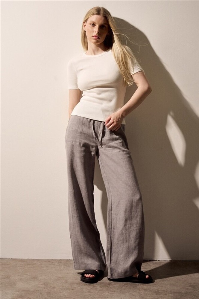 ID товара: 1200682 Состав: Лён 100% Сезон: Весна/Лето Длина: Полная Фасон: Широкие Вид застежки: Шнурок Тип карманов: В шве Основная ткань: Лен Стиль: повседневный Страна бренда: Россия Страна производства: Россия Брюки PALAZZO из льна. Параметры модели: рост 177см, обхват груди 84, обхват талии 63, обхват бёдер 95. На модели размер М Комментарии к товару