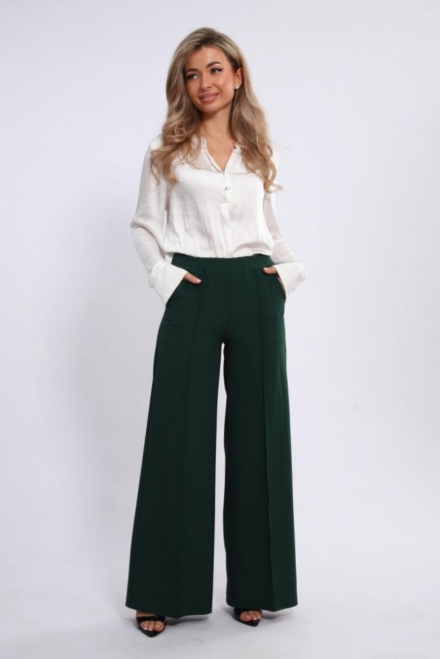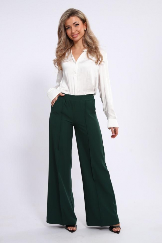 Женские брюки идеально подходят для любого случая. Они отличаются стильным кроем и легким материалом, что делает их подходящими для летних дней и вечеринок. Брюки имеют свободный силуэт, который подчеркивает линию талии. Модель подходит как для офисов, так и для праздничных мероприятий. Удобная резинка гарантирует надежную посадку на талии. Брюки классические широкие визуально корректируют особенности телосложения, скрывают недостатки придавая образу элегантности. Элегантность брюк со стрелками совмещена с легкостью и свободой палаццо.