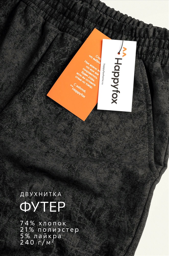 Бренд: Happyfox Серия: Happyfox- Школьная пора Страна: Россия Состав: 74% хлопок, 21% полиэстер, 5% лайкра Материал: Футер Плотность ткани: 240 г/м2 Цвет: винтаж.черный