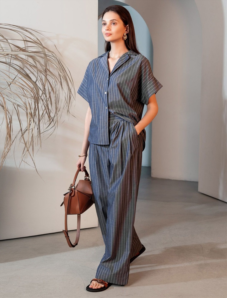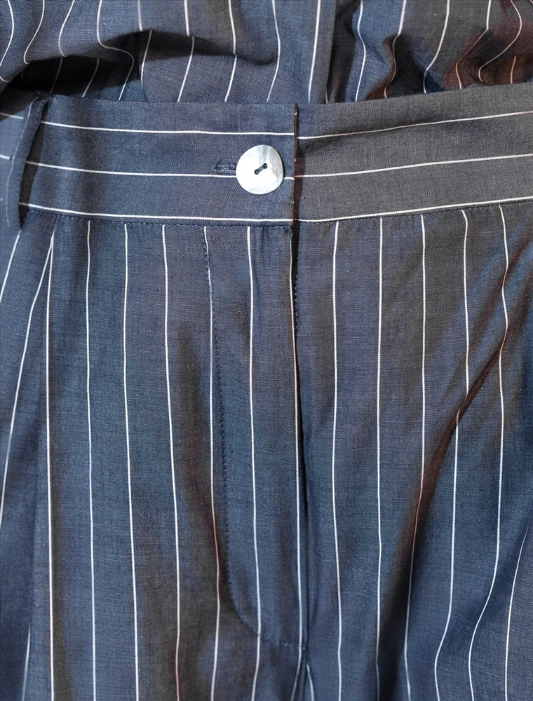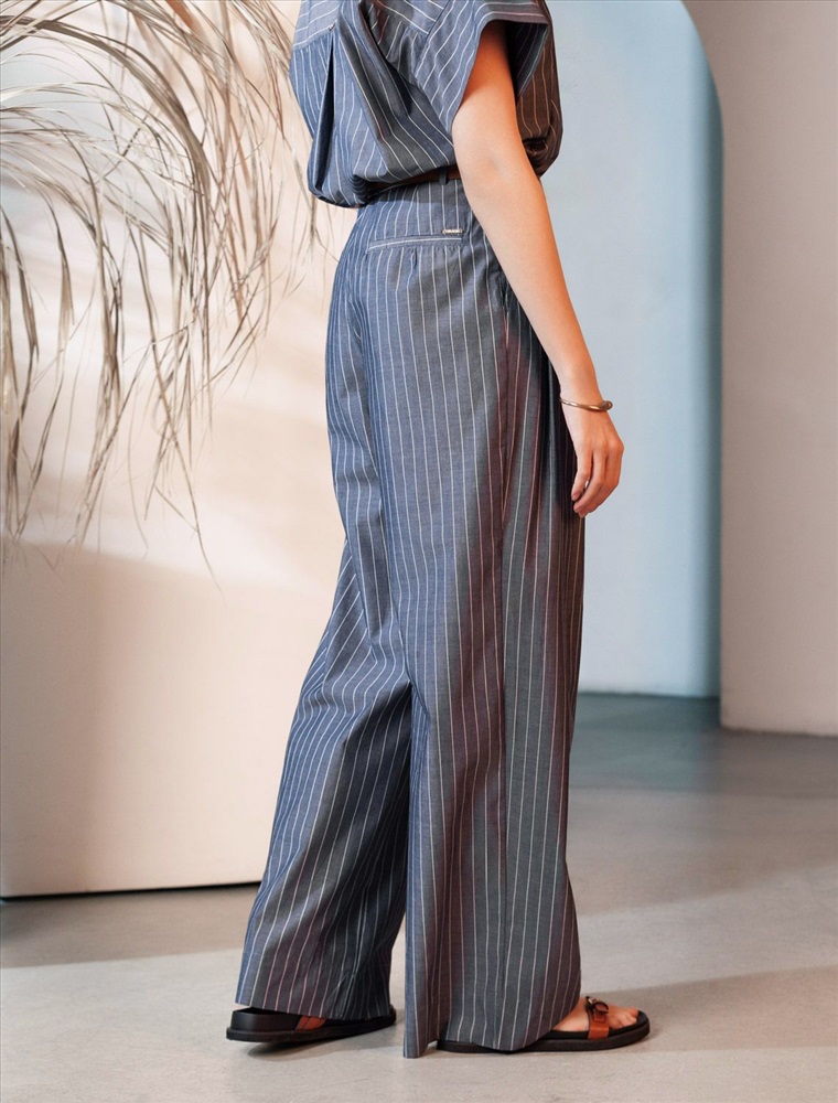 Свободные брюки палаццо серо-синего цвета в полоску из легкого хлопкового поплина плотностью 106 Г/м2— выбор, который легко выделит в любой обстановке. Классические брюки в тонкую полоску создают идеальный силуэт, визуально вытягивают и стройнят фигуру. Принт добавляет динамики и оригинальности даже самым лаконичным комплектам, делая этот предмет гардероба настоящим хитом сезона. Натуральный состав ткани обладает высокой воздухопроницаемостью, а также способностью поглощать и отдавать влагу. В повседневных брюках будет очень комфортно, благодаря правильной регуляции температуры тела. Брюки подходят на маленький и высокий рост, а так же на любую фигуру, позволяя подчеркнуть достоинства и скрыть возможные недостатки. С палаццо на высокой посадке вы можете создать различные образы, от делового шика до повседневного кэжуал, главное правило — баланс объемов , т.е. менее свободный верх к широкому низу, заправлять верх или выбирать укороченные модели. Полоска добавляет графичности, поэтому отлично сочетается с монохромным верхом для вытягивания силуэта или контрастными цветами. С этими стильными брюками можно создавать эффектные наряды как на выход, так и для ежедневных рабочих дел или простых прогулок.