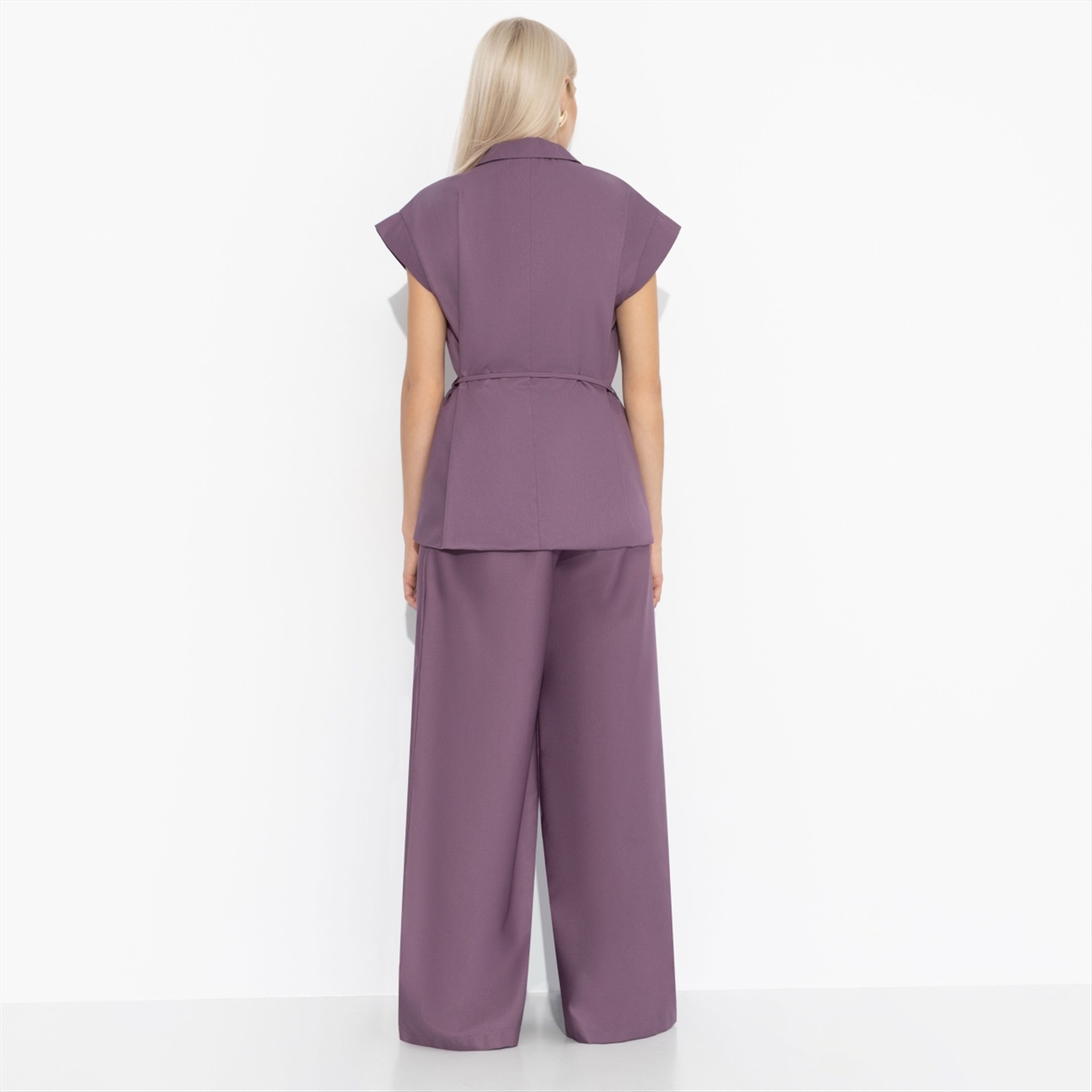 Брюки ЧАРУТТИ цвета созревающей сливы выделят вас среди черных и серых образов. Оставайтесь деловой леди, но добавьте в свой образ изюминку. Вы будете заметны и притягательны. Пройти без очереди – возможно! Познакомиться с нужным человеком – легко! Вечером пойти на свидание – без вопросов! Брюки широкие с карманами. Посадка на талии. Брюки застегиваются на молнию и пуговицу. Есть шлевки.