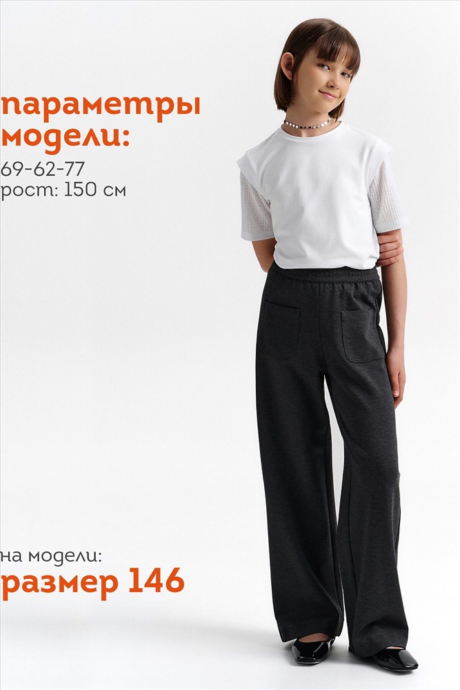 ID товара: 1188832 Состав: 60% Вискоза, 35% Полиамид, 5% Эластан Сезон: Демисезон Длина: Полная Фасон: Прямые Вид застежки: Шнурок Тип карманов: Накладные Основная ткань: Вискоза Стиль: Повседневный Страна бренда: Россия Страна производства: Китай Модные, удобные и универсальные — брюки, которые идеально подойдут для школы и активного повседневного образа. Прямой крой без лишнего объёма делает силуэт аккуратным и современным, отлично подходит для всех типов фигур, включая полных деток, обеспечивая комфорт и свободу движений. Пояс выполнен с внутренней резинкой и дополнен утяжкой на шнурке — удобно, надёжно и без давления. Брюки легко сидят на фигуре, не сползают и не перекручиваются даже при активной носке. Стильная деталь — накладные карманы с округлыми уголками. Они добавляют образу индивидуальность и «городской» характер, оставаясь при этом уместными в школьной форме. Материал практичный и приятный к телу: не мнётся, не вытягивается, легко стирается и быстро сохнет. Подходят как для школьных занятий, так и для повседневных дел — от прогулок до поездок. Брюки, которые удобно носить, легко сочетать и приятно не снимать. Школьный стиль — с характером. Используйте таблицу размеров на фотографии, чтобы выбрать подходящий размер. Обратите внимание, что цвет товара на экране вашего устройства может отличаться от реального. Комментарии к товару