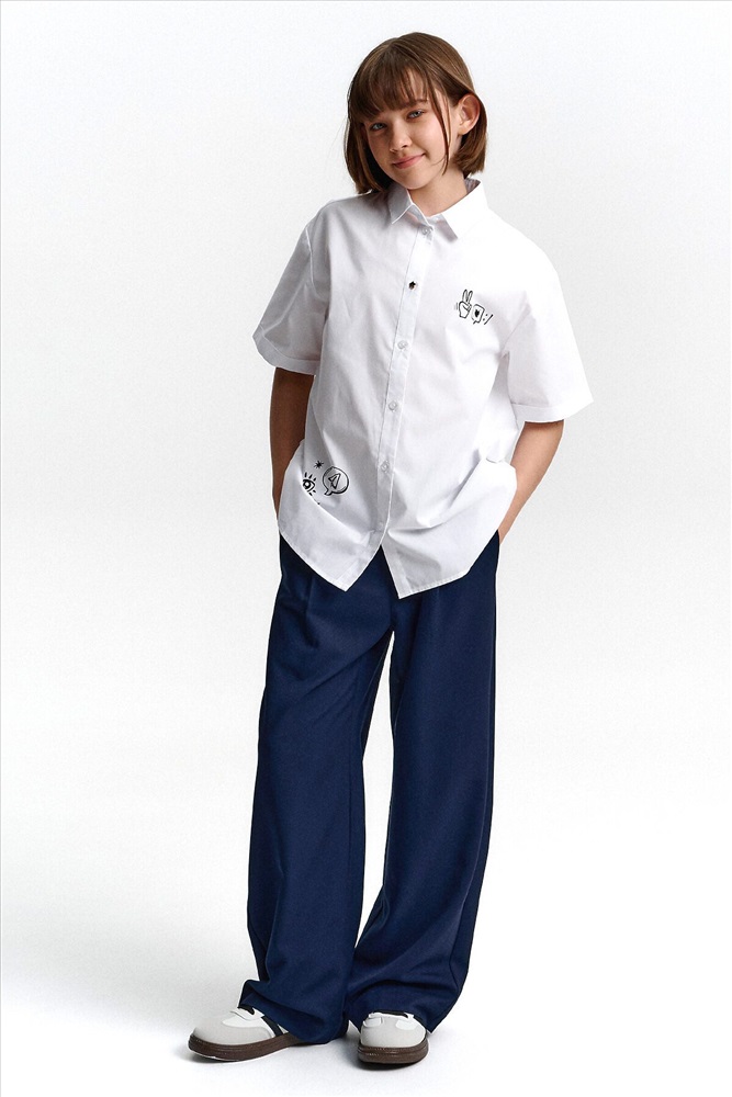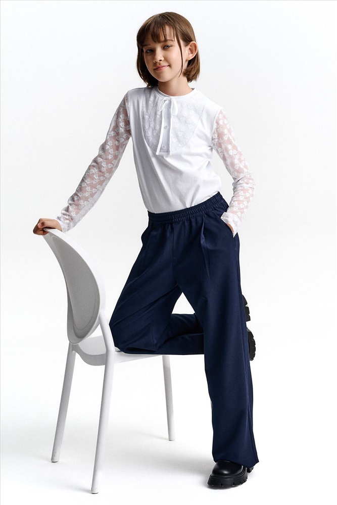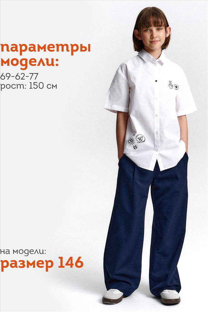 ID товара: 1188837 Состав: 52% Вискоза, 44% Полиэстер, 4% Эластан Сезон: Демисезон Длина: Полная Фасон: Свободный Вид застежки: Шнурок Тип карманов: В шве Основная ткань: Вискоза Стиль: классический Страна бренда: Россия Страна производства: Китай Школьные брюки для девочки из смесовой ткани — удобство и аккуратный стиль для школы и повседневных занятий. Свободный прямой крой гарантирует комфорт и свободу движений. Такие брюки не сдавливают и отлично подходят для любой фигуры девочки-школьницы. Смесовая ткань — практичный материал для школьной формы: не мнётся, дышит и быстро сохнет, что облегчает уход и помогает всегда выглядеть опрятно. Спереди — удобные боковые карманы с декоративными креплениями, которые делают карманы прочнее и долговечнее. Сзади — аккуратная имитация прорезного кармана для стильного, но строгого образа. Пояс с эластичной резинкой и внутренним шнурком позволяет точно подогнать брюки по талии — важно для растущих девочек, чтобы одежда всегда сидела удобно. Выбирайте нужный размер по таблице размеров на фото. Цвет товара на экране вашего устройства может отличаться от цвета изделия вживую. Комментарии к товару