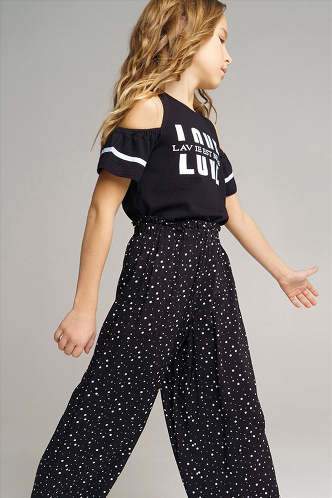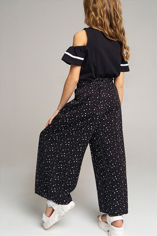 ID товара: 744008 Состав: 100% Вискоза Сезон: Весна/Лето Длина: Полная Фасон: Широкие Рисунок: Горох Декоративные элементы: Принт Основная ткань: Вискоза Стиль: Нарядный Страна бренда: Германия Страна производства: Россия
