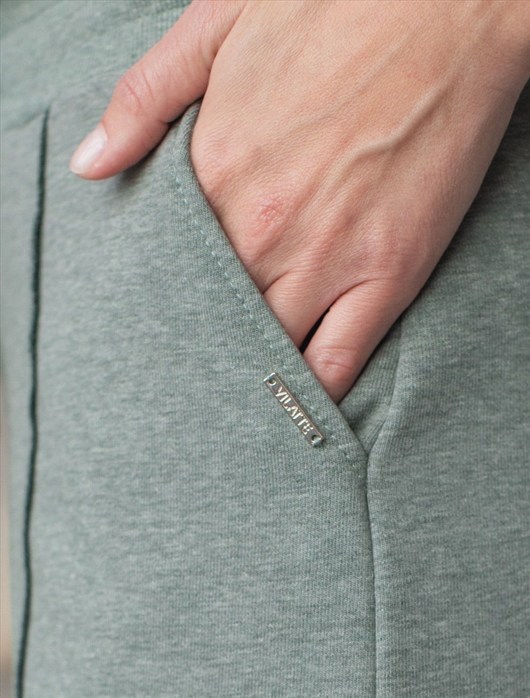 Брюки прямого кроя с удобным эластичным поясом на резинке и карманами по бокам выполнены из премиального футера-двухнитки. Наличие эластана в составе гарантирует комфорт и долговечность изделия, материал хорошо пропускает воздух, позволяя телу дышать.. Эти уютные брюки нежного оливкового цвета с эффектом меланж созданы для вашего комфорта. Свободный прямой крой обеспечивает свободу движений и максимальное удобство в любых ситуациях, поэтому они подойдут и на большие размеры, а так же на высокий или низкий рост. Фигура подчеркивается, а силуэт визуально вытягивается за счет кроя палаццо и застроченных декоративных стрелок. Вы можете создать стильный образ на каждый день в сочетании с джемпером D49.139 и бомбером D49.141. В повседневных трикотажных брюках вы будете чувствовать себя комфортно и уверенно, наслаждаясь каждым моментом дня.