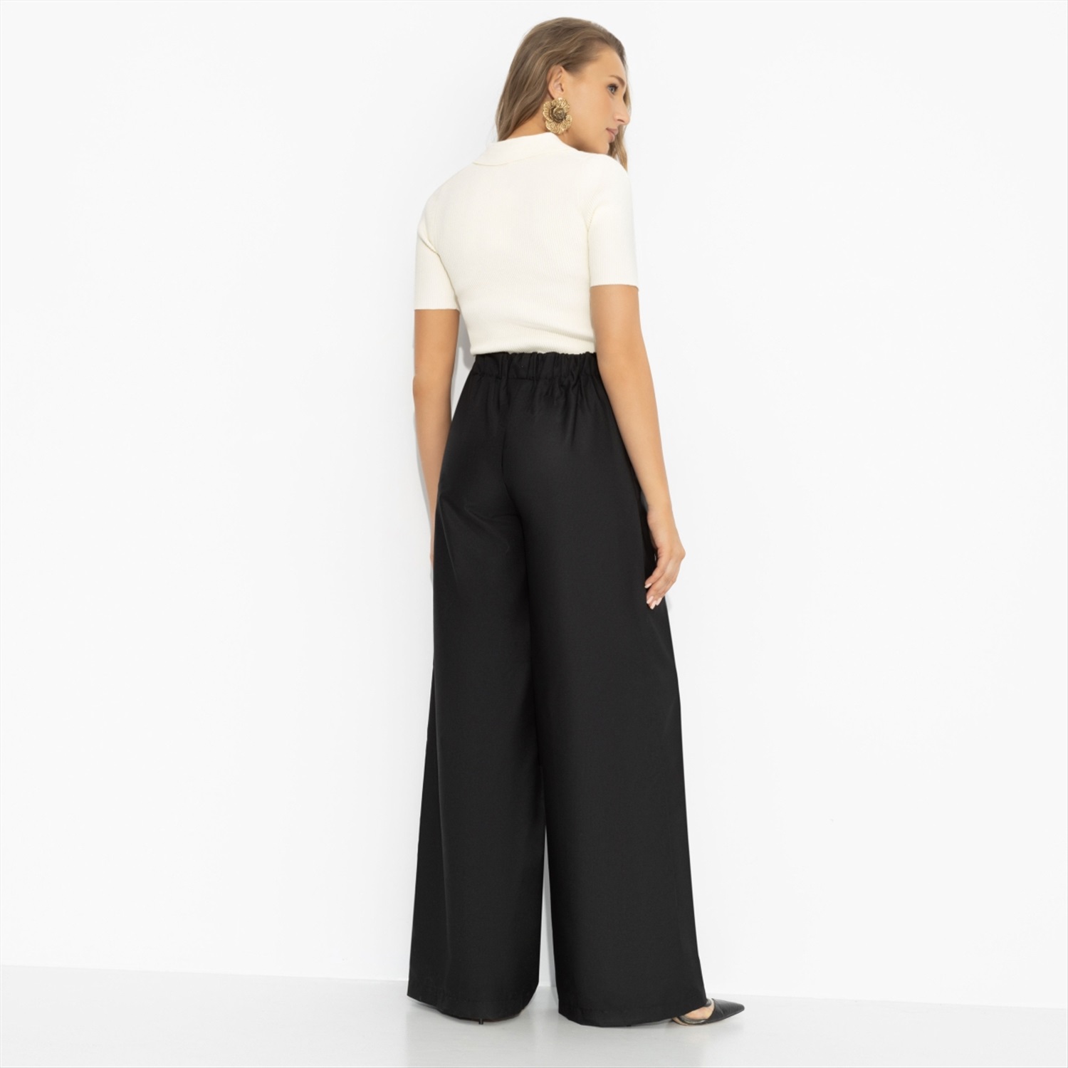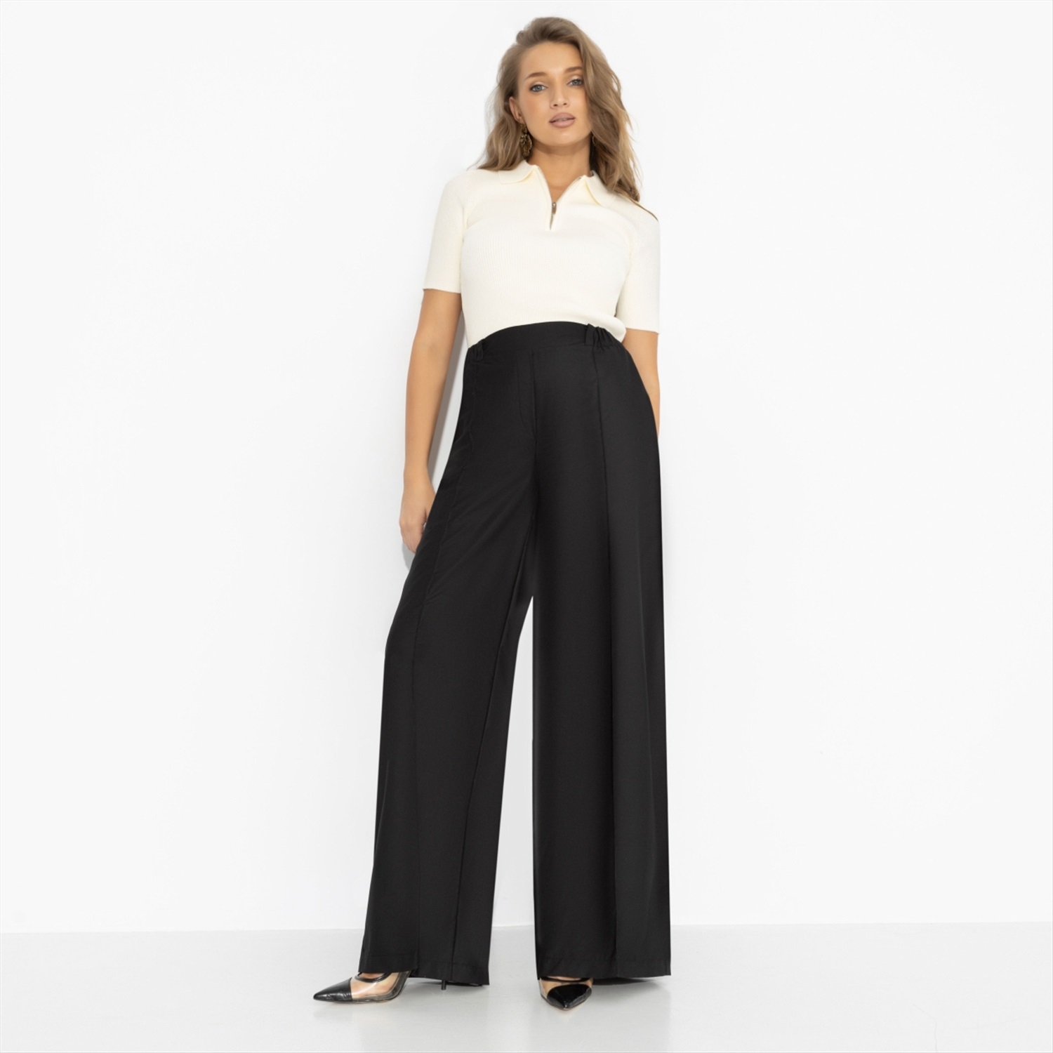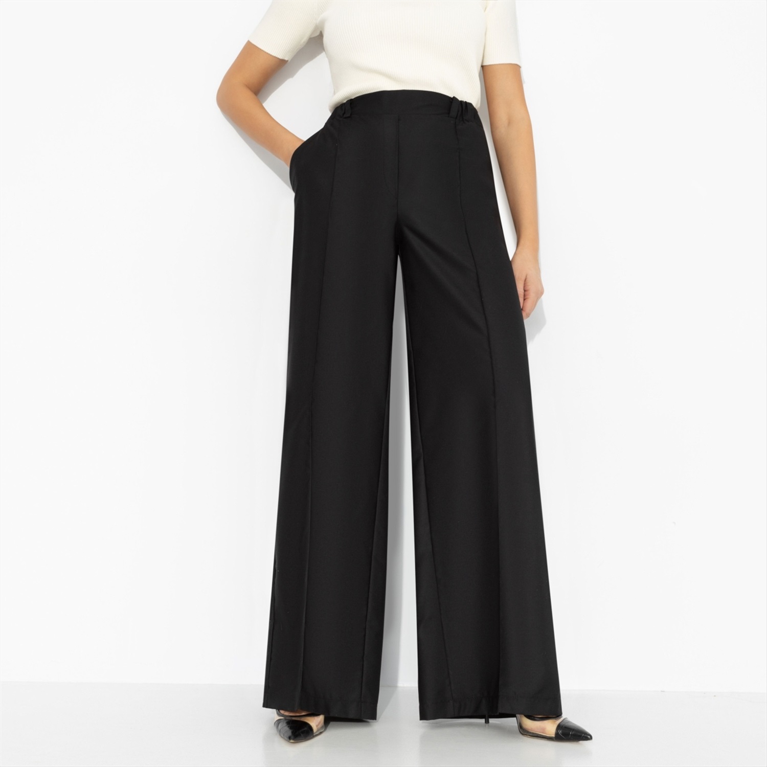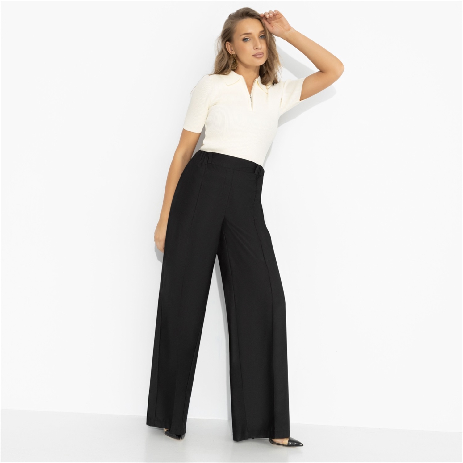 Я: ничего не хочу. Также я: хочу, чтобы всё было по-моему. Чёрные брюки от ЧАРУТТИ идеально поддерживают любое твое настроение. Высокая посадка подчёркивает талию, широкий крой и вертикальная стрелка вытягивают силуэт и задают тот самый уверенный шаг. Минимализм без лишних слов – зато с вау-эффектом, который считывается сразу. Брюки с карманами на резинке. Ткань с лёгким блеском. Комментарии к товару
