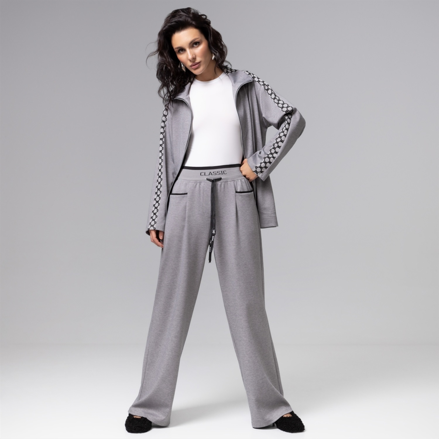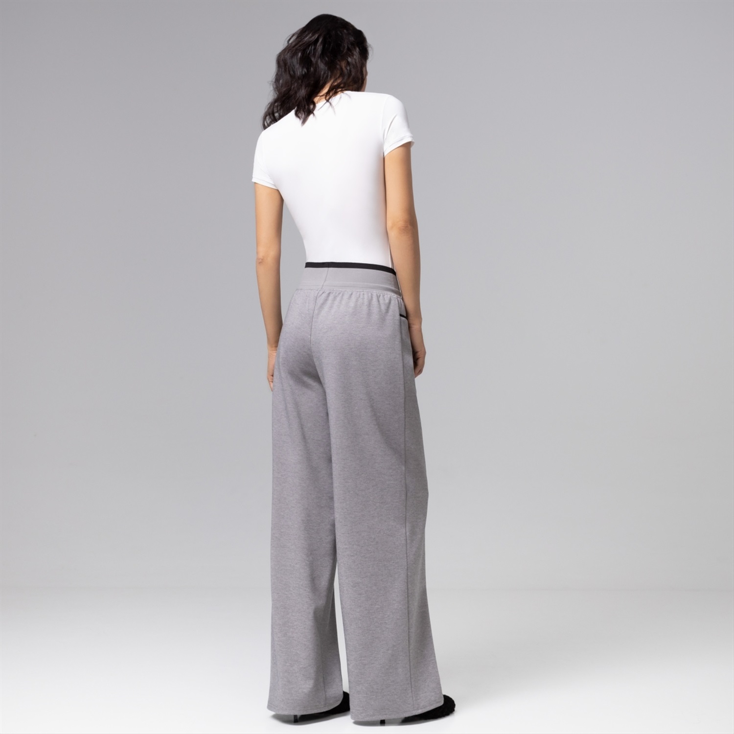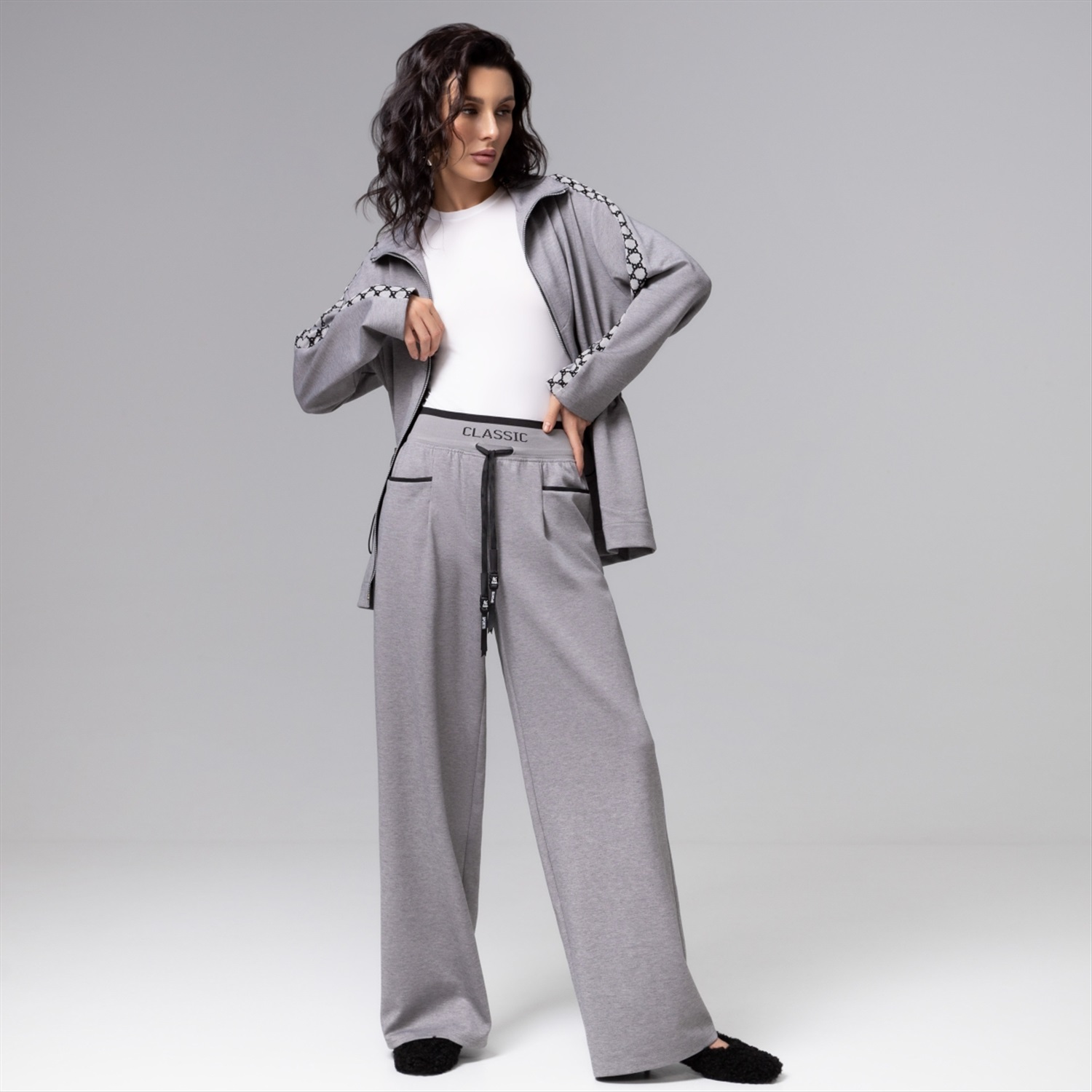 Эти брюки не просто дополняют образ – они диктуют ритм вашему дню. Мягкая ткань играет с пространством, превращая обычную походку в танец. Модель с интегрированными карманами на передней стороне сохраняет безупречную чистоту кроя, подчеркивая сдержанную элегантность. Широкая трикотажная резинка на поясе обеспечивает комфорт и современный вид, идеально контрастируя с благородным серым оттенком ткани. Комментарии к товару