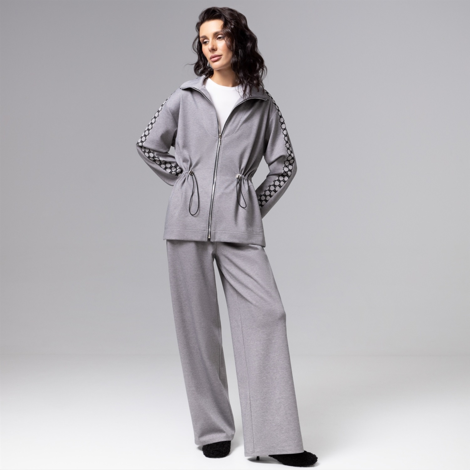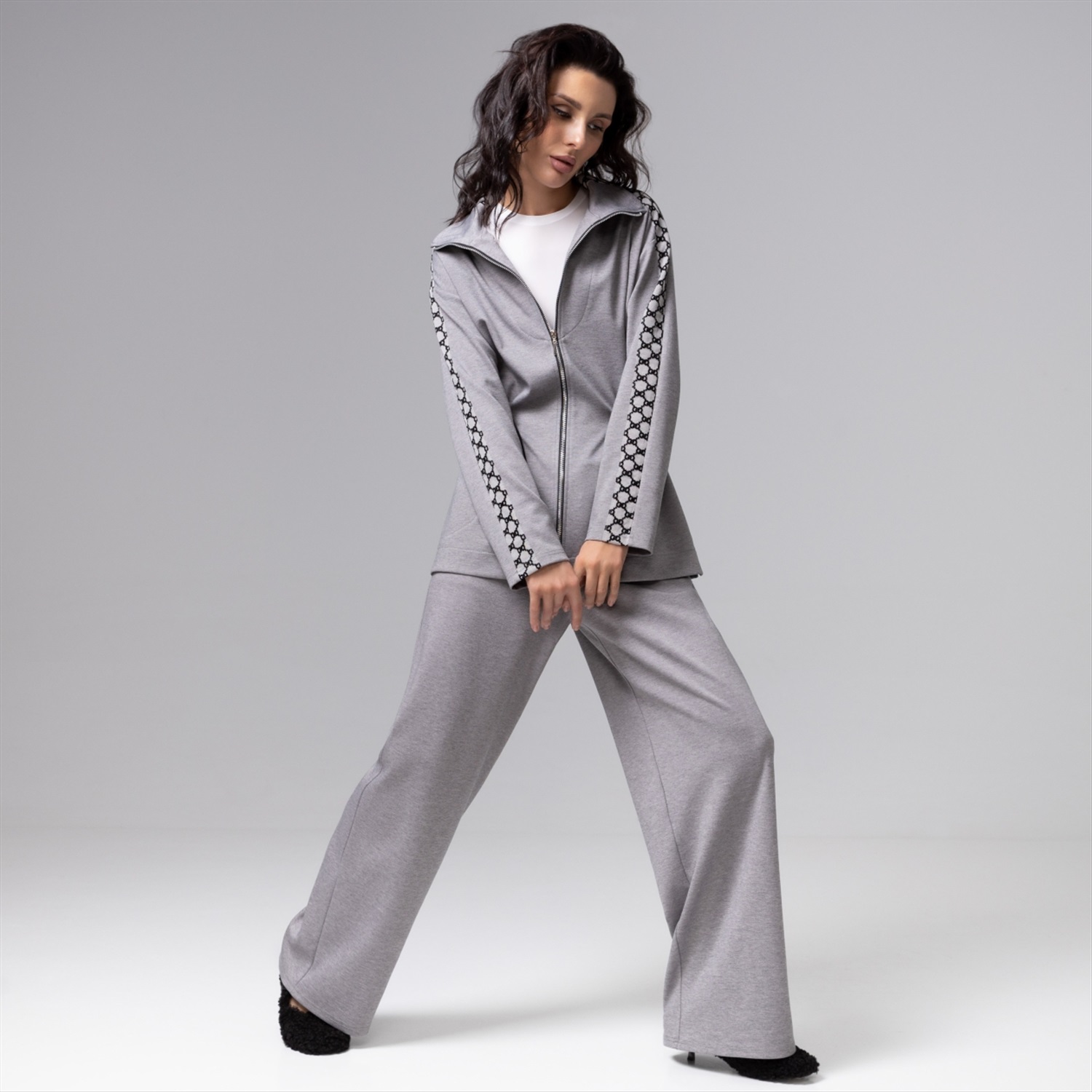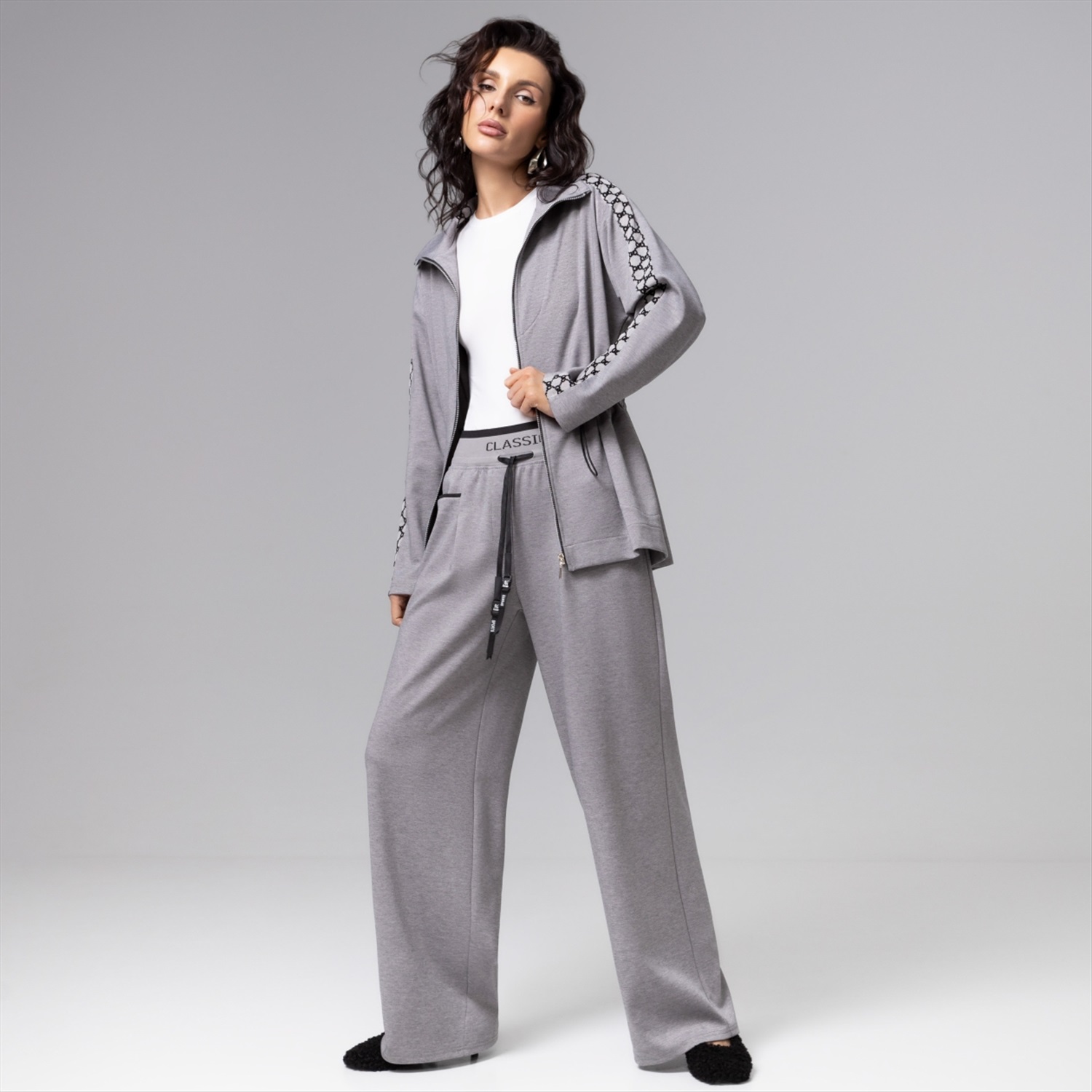 Эти брюки не просто дополняют образ – они диктуют ритм вашему дню. Мягкая ткань играет с пространством, превращая обычную походку в танец. Модель с интегрированными карманами на передней стороне сохраняет безупречную чистоту кроя, подчеркивая сдержанную элегантность. Широкая трикотажная резинка на поясе обеспечивает комфорт и современный вид, идеально контрастируя с благородным серым оттенком ткани. Комментарии к товару