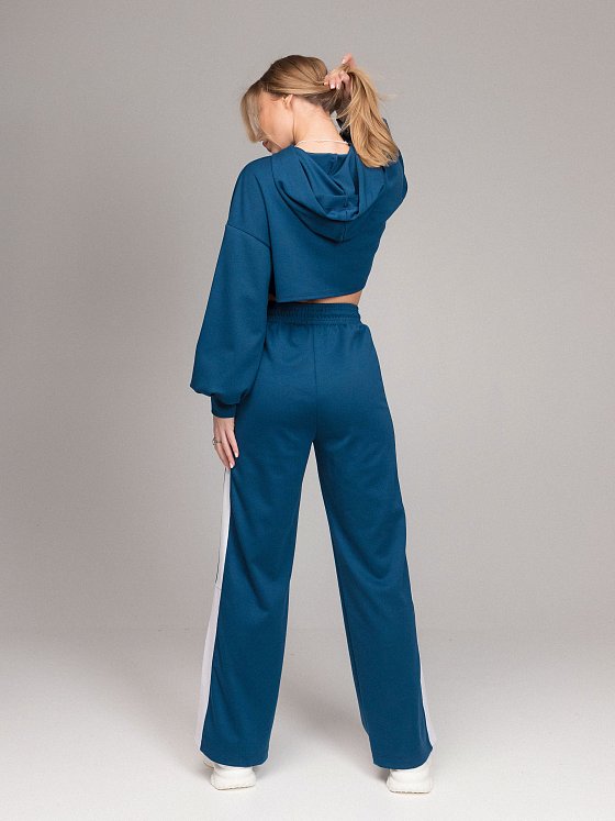 Женские брюки выполнены из полотна "академик". Элегантная модель с контрастными боковыми планками по всей длине. На верхней части планки настрочен декоративный лампас из основного полотна. Стильный разрез брючин до низа добавляет динамики силуэту. Притачной пояс с резиной и шнуром, пропущенным через петли, обеспечивает идеальную посадку. Строгий и лаконичный дизайн для создания стильных образов.
