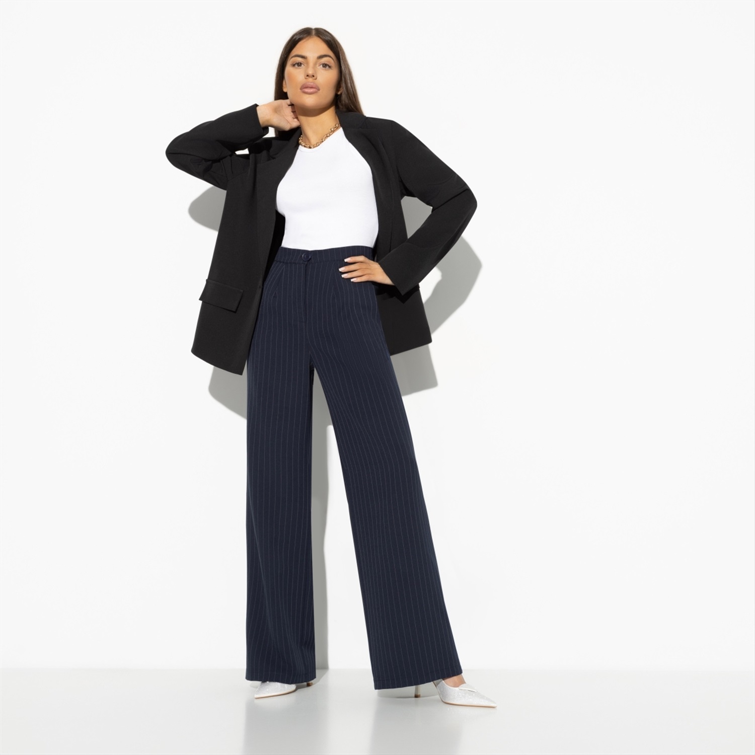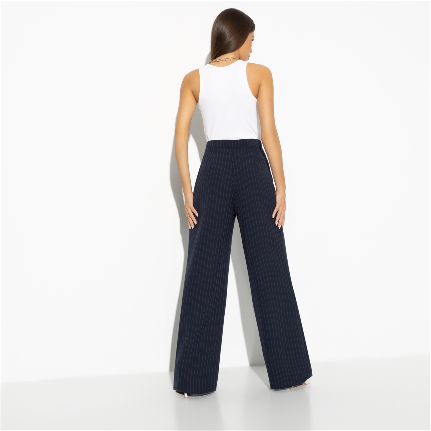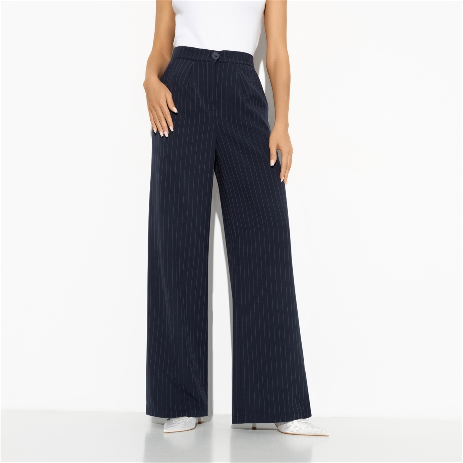 Состав: «Полоска костюмная» (60% полиэстер, 37% вискоза, 3% спандекс) Плотность ткани: Средняя Тип ткани: Текстиль Вид застежки: Молния Карманы: В боковом шве Основной цвет ткани: Синий Подклад: Нет Резинка по талии: Нет Рисунок/раппорт: Нет, все изделия идентичны Сезон: Круглогодичный Силуэт: Свободный Стиль: Классический Фасон брюк: Классические Фасон брюк: Классические Параметры модели на фото: