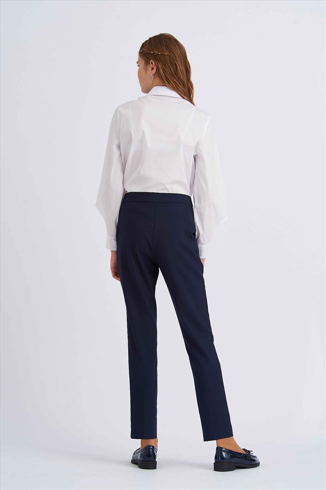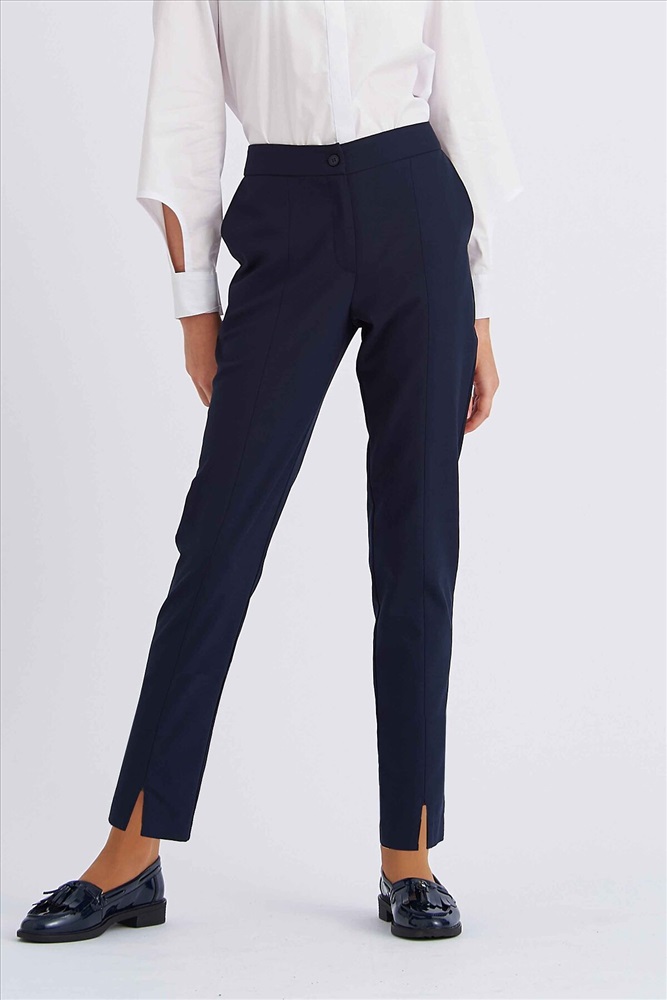 ID товара: 1220796 Акции: -5%, до 24.11.2025 Состав: 48% Вискоза, 48% Полиэстер, 4% Полиуретан Сезон: Демисезон Длина: Полная Фасон: Зауженные Тип карманов: В шве Основная ткань: Вискоза Стиль: классический Страна бренда: Россия Страна производства: Россия Элегантные, зауженные брюки из костюмной поливискозы с интересной отделкой переда, застроченной стрелки, заканчивающейся небольшим разрезом. Дополнены боковыми карманами. Комментарии к товару