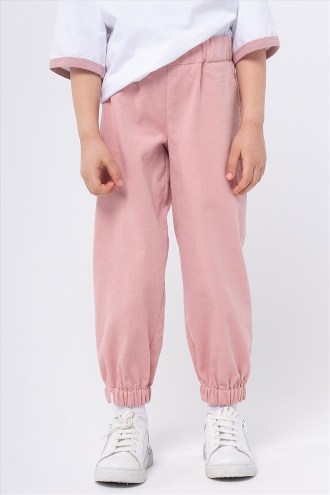Брюки-джоггеры для девочек. Модель выполнена из теплого вельвета, что делает ее идеальной для прогулок. Брюки прямого силуэта без застежки, с поясом на резинке. Боковые карманы и резинки по низу брюк добавляют удобства и функциональности. Брюки представлены в двух цветах.