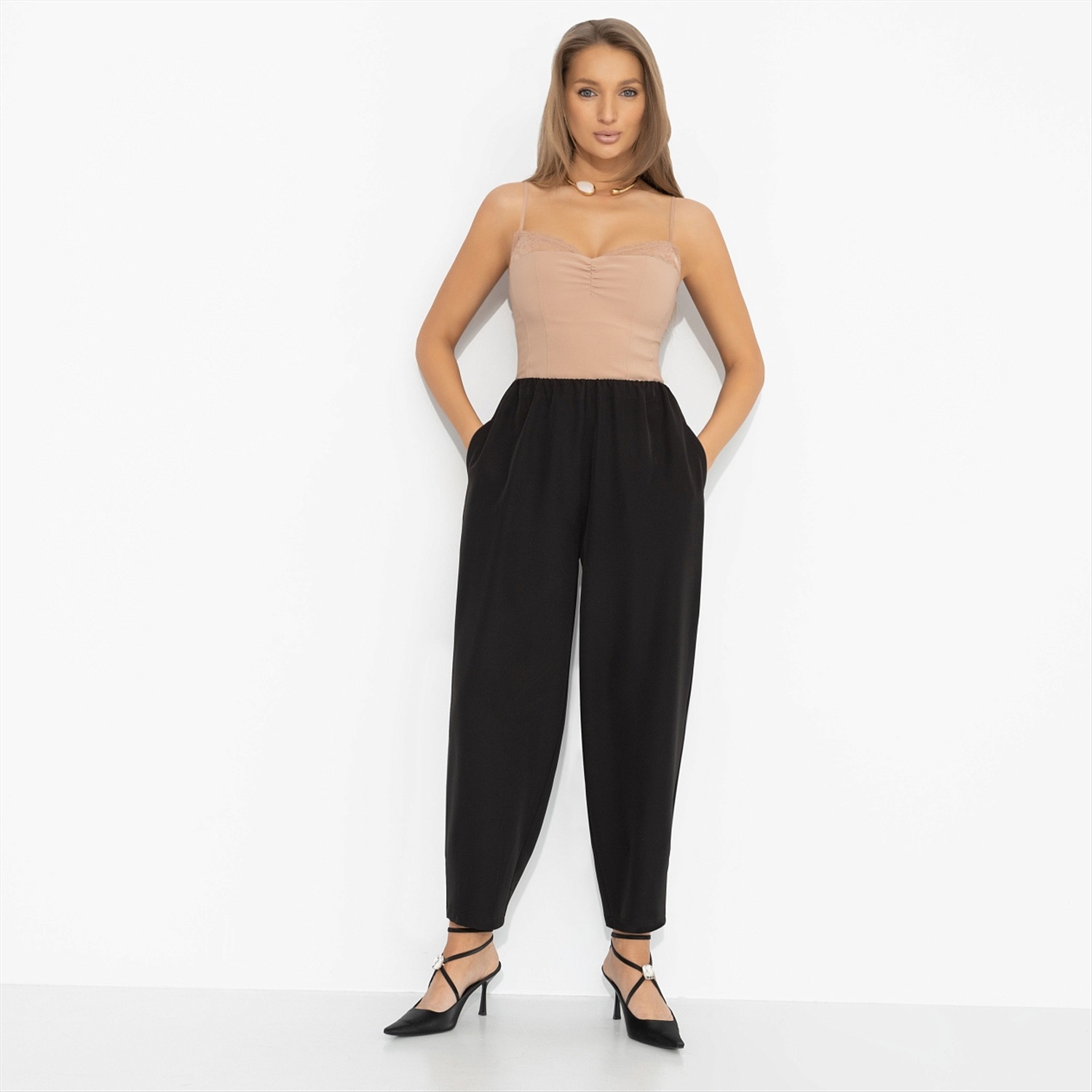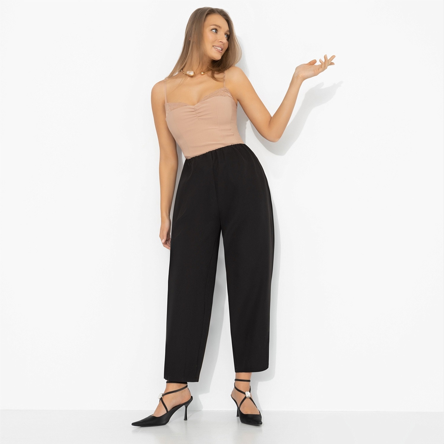 В функциональность и комфорт новых брюк ты влюбишься с первого шага! Днём сочетай их с лаконичным топом и лодочками для собранного городского образа: высокая посадка подчёркивает талию, мягкие складки формируют аккуратный объём. Вечером добавь каблук и акцентный верх – силуэт станет выразительнее. Легко меняй настроение – от офиса до ужина без паузы на переодевание.