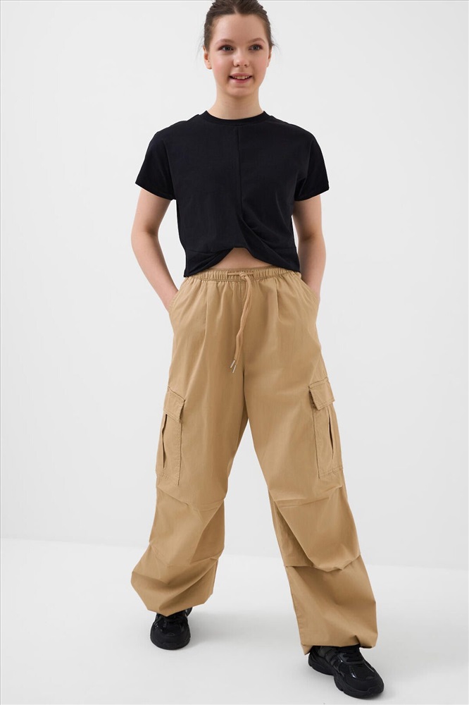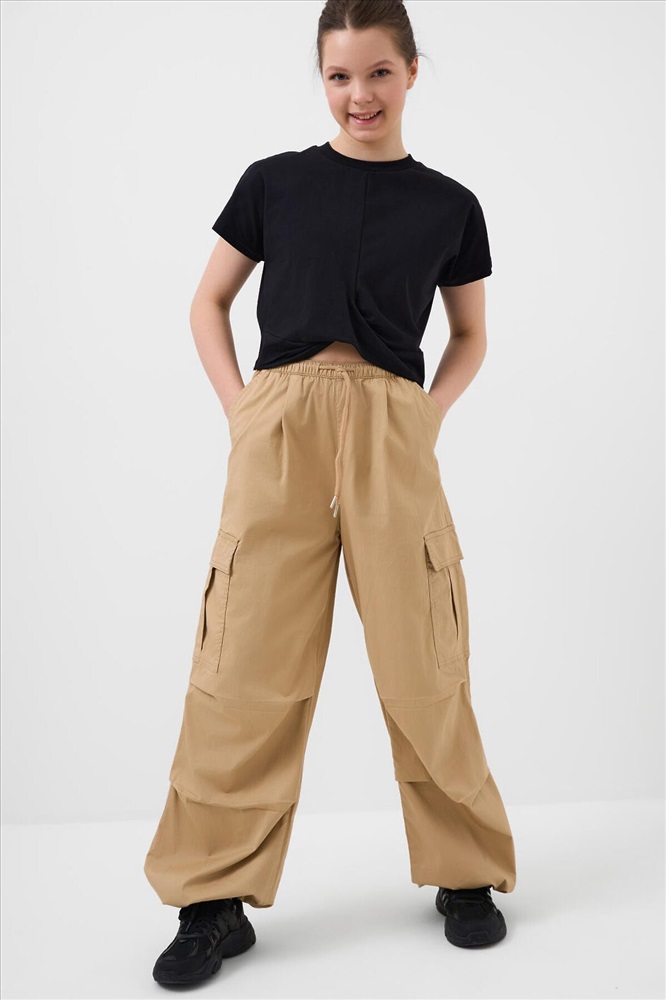 ID товара: 1240251 Состав: 97% хлопок, 3% эластан Сезон: Весна/Лето Брюки карго для девочки подростка. Выполнены из плотного хлопкового твилла. Модель имеет заниженную посадку и свободный крой с утяжками внизу, которые позволяют регулировать ширину брючин. Пояс на резинке с дополнительной регулировкой шнуром. На бедрах расположены накладные карманы на липучке, а также боковые карманы. Комментарии к товару