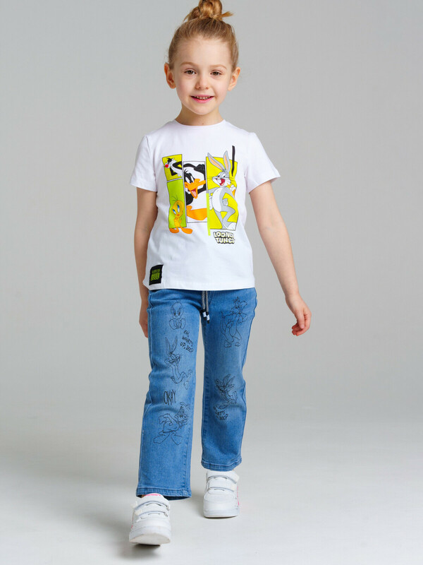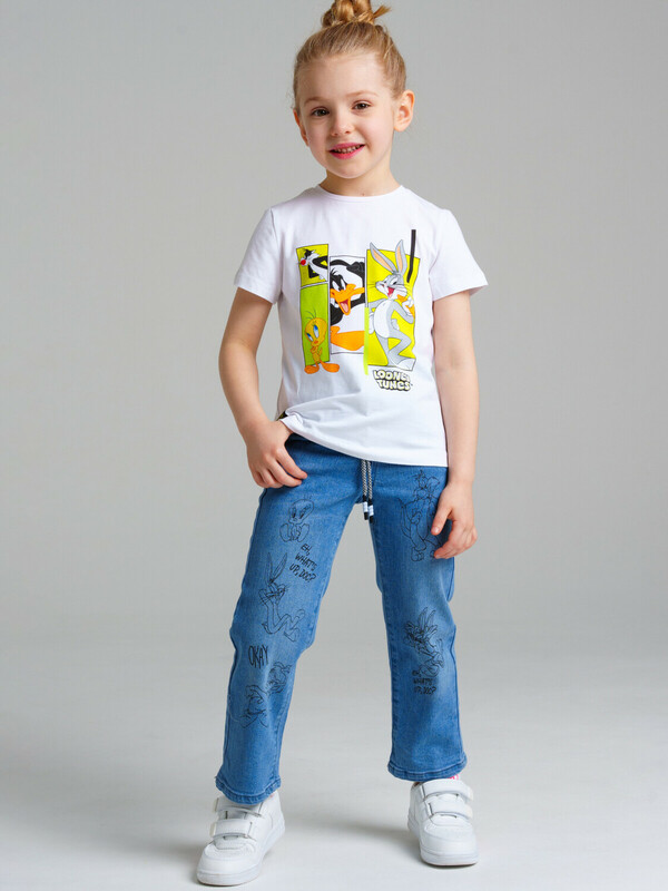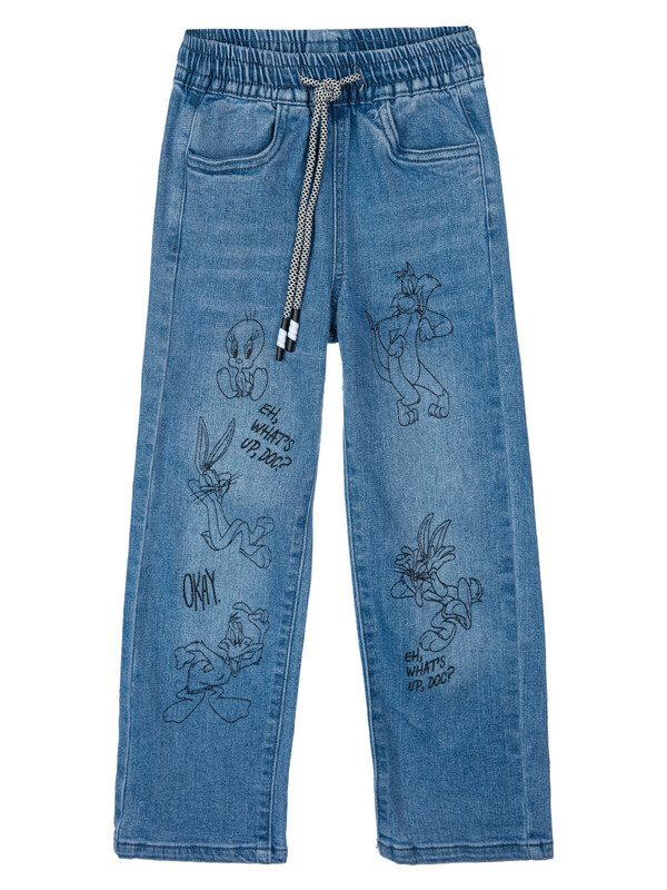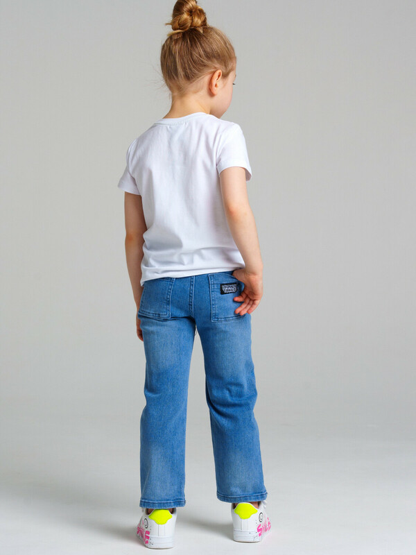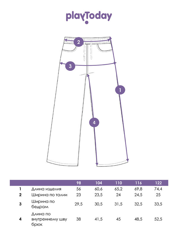 Производитель: PlayToday Джинсы для девочки. Эластичный пояс со шнурком. Крой Wide leg ― это свободная посадка и расклёшенные от бедра штанины. Высокая посадка.