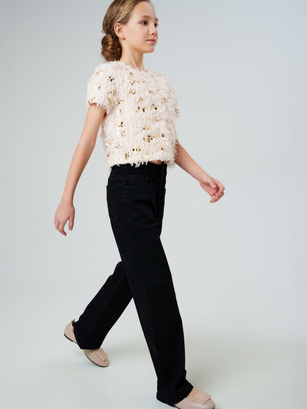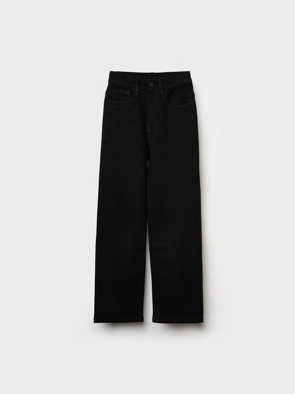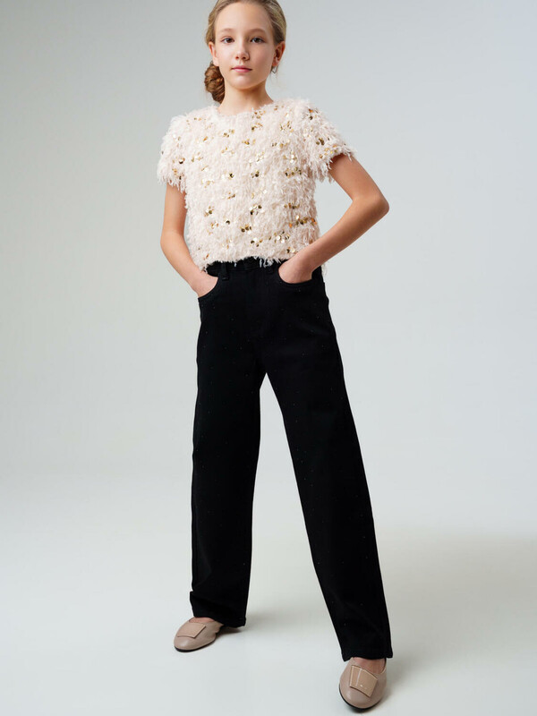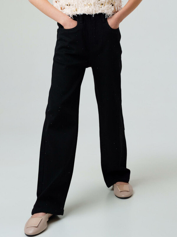 Джинсы прямые черные со стразами для девочки подростка от PlayToday — тёплая, стильная и комфортная модель, которая станет идеальным выбором для холодного времени года.