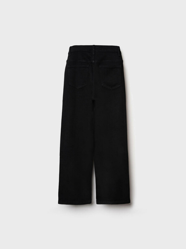 Джинсы выполнены из черного денима средней плотности. Модель отлично держит тепло, остаётся комфортной и приятной к телу даже в прохладную погоду. Прочный материал устойчив к износу и долго сохраняет опрятный внешний вид.