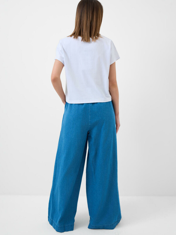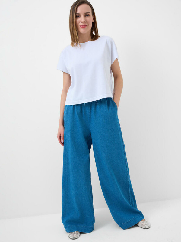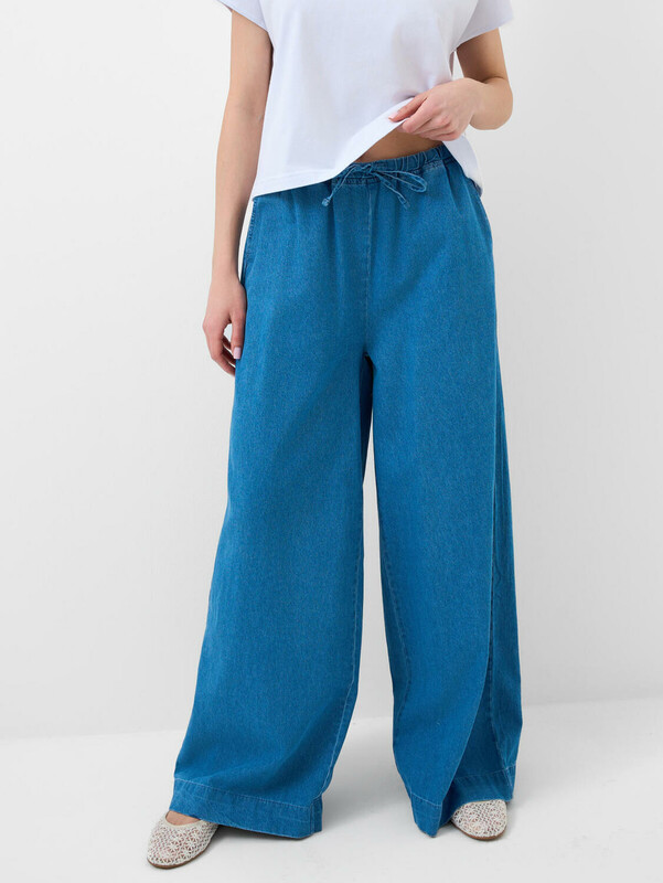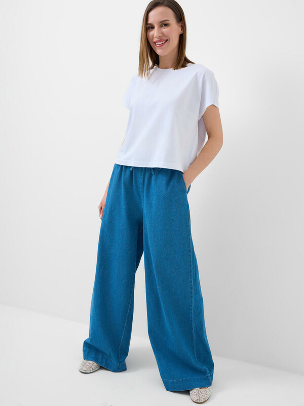 Производитель: PlayToday Женские джинсы свободного кроя с высокой посадкой и прямыми широкими штанинами. Джинсы выполнены из голубого денима. Пояс на резинке со шнурком обеспечивает комфортную посадку и регулируется по объему.