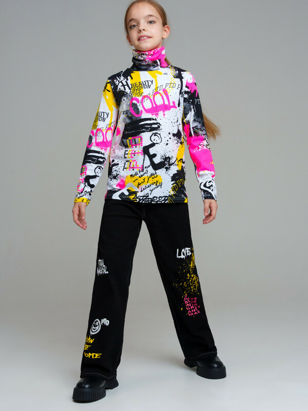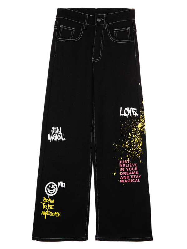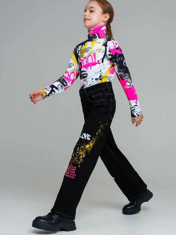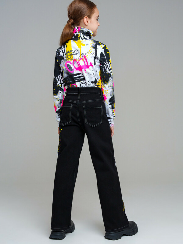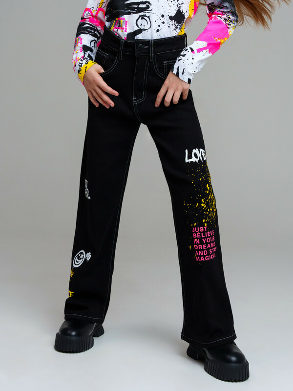 Джинсы с микроначесом для девочки подростка. Модные утепленные джинсы wide-leg. Застежка на молнию и болт. Внутренняя утяжка. Боковые карманы. Модель из капсульной коллекции DIGITAL TRANSFORM (ДИДЖИТАЛ ТРАНСФОРМ). Соберите полный образ в едином стиле!