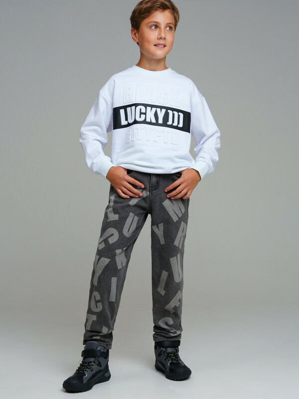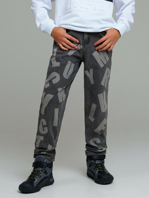 Брюки текстильные джинсовые утепленные флисом для мальчиков