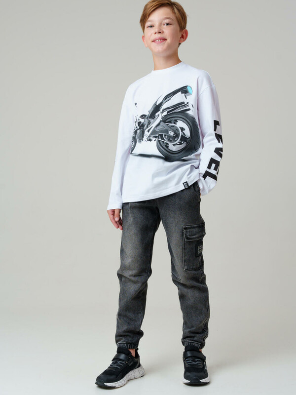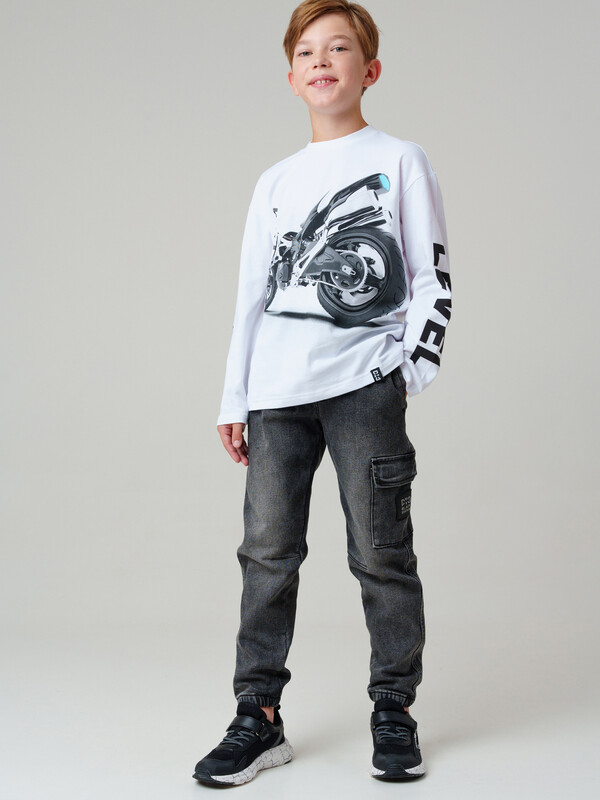 Брюки текстильные джинсовые утепленные флисом для мальчиков