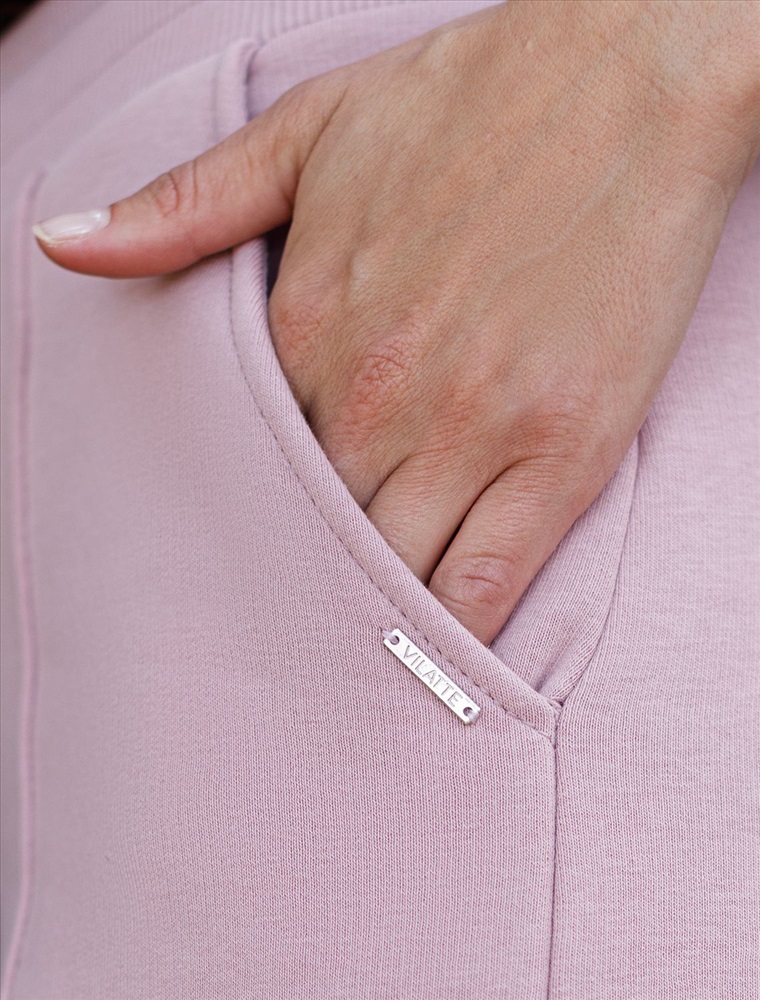 Эти уютные брюки пыльно-розового цвета созданы для вашего комфорта. Свободный прямой крой обеспечивает свободу движений и максимальное удобство в любых ситуациях, поэтому они подойдут и на большие размеры, а так же на высокий или низкий рост. Фигура подчеркивается, а силуэт визуально вытягивается за счет кроя палаццо и застроченных декоративных стрелок.