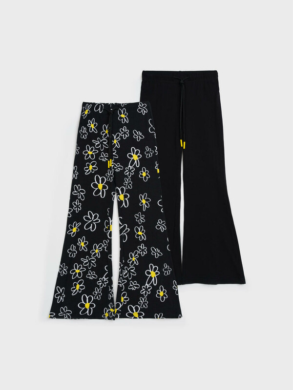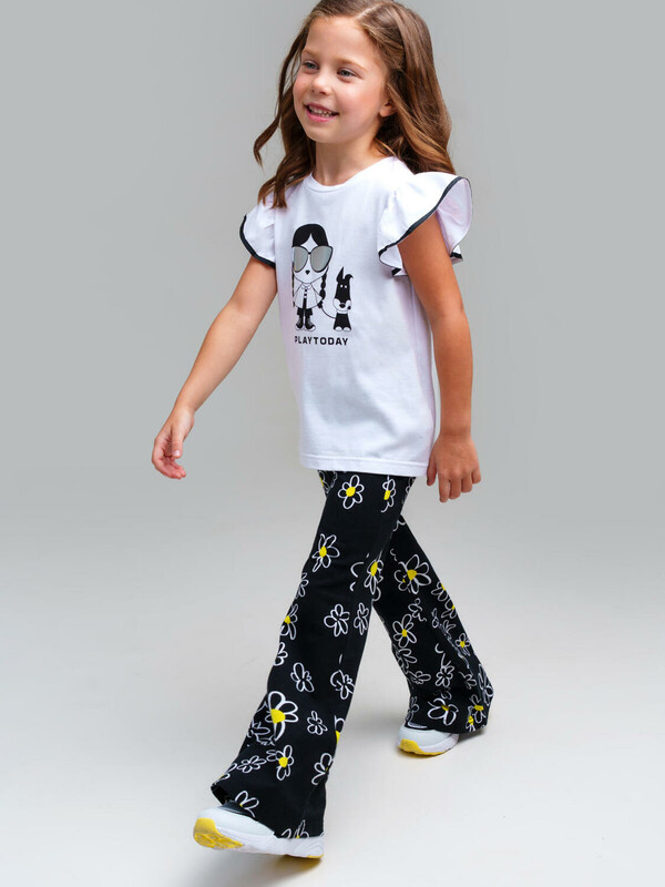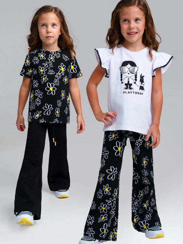Набор детских брюк для девочки. Комплект брюк из качественного и приятного на ощупь трикотажа джерси. Штаны на резинке со шнурком. Высокое содержание хлопка. Благодаря наличию эластана в составе ткани изделие держит форму и меньше мнется. Модель выполнена из качественного и приятного на ощупь трикотажа.