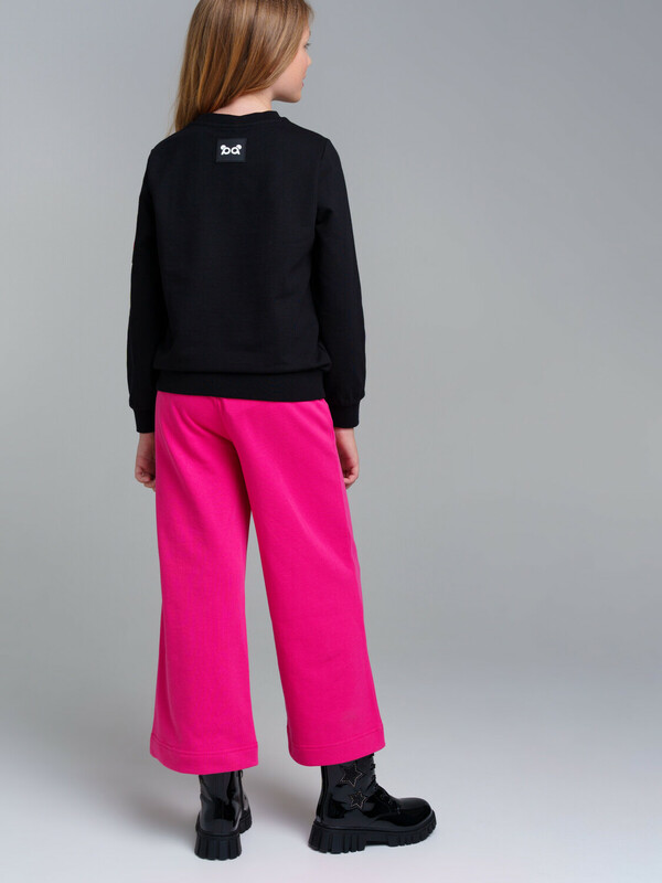 Брюки из french terry. Модель свободного кроя с широкими штанинами. Эластичный пояс со шнурком. Функциональные карманы.