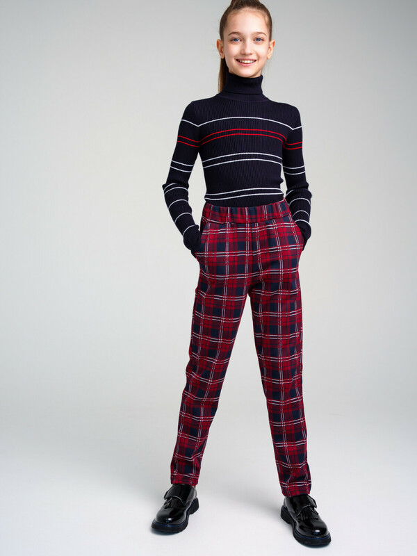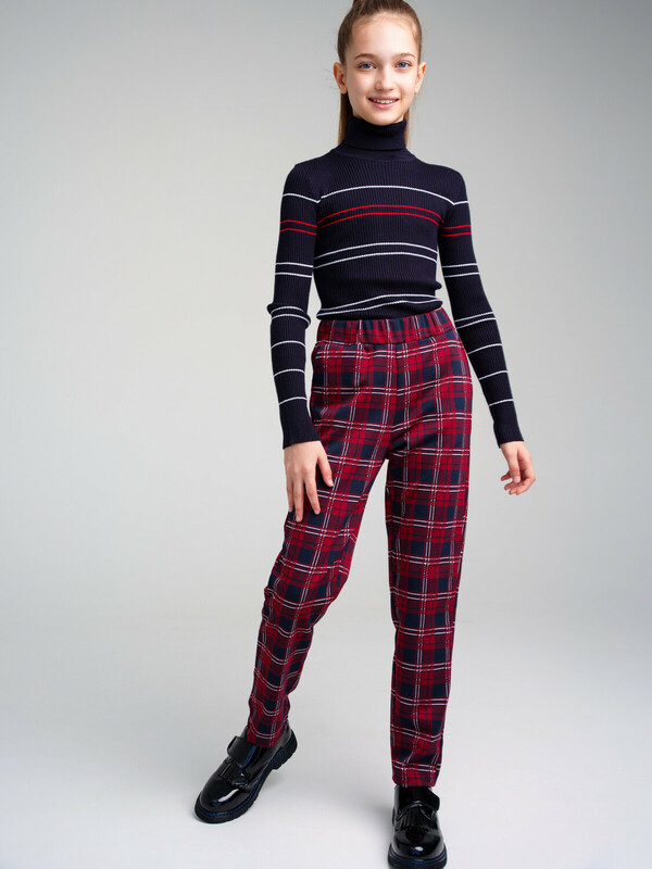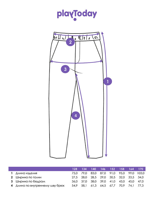 Брюки из костюмной жаккардовой ткани. Карманы в боковых швах. Пояс с комфортной широкой резинкой по талии.
