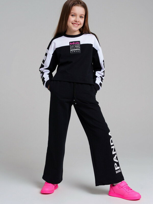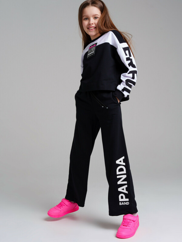 Брюки из футера. Высокое содержание хлопка. Модель прямого силуэта. Карманы в боковых швах. Эластичный пояс со шнурком.