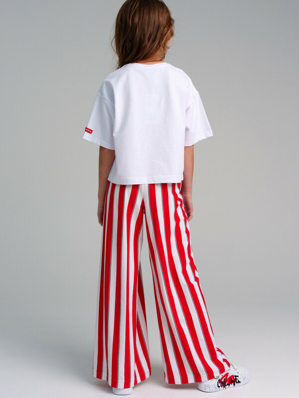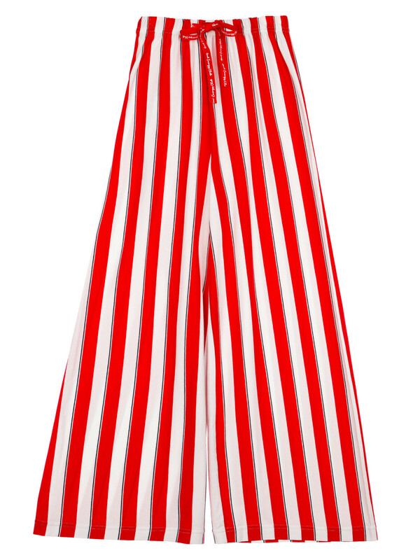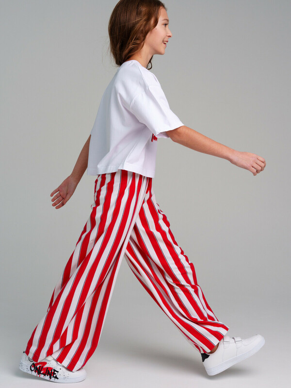 Брюки свободного кроя из качественного и приятного на ощупь трикотажа джерси. Высокое содержание хлопка 95%. Благодаря наличию эластана в составе ткани изделие проще в уходе и держит форму. Силуэт oversize. Эластичный пояс со шнурком.