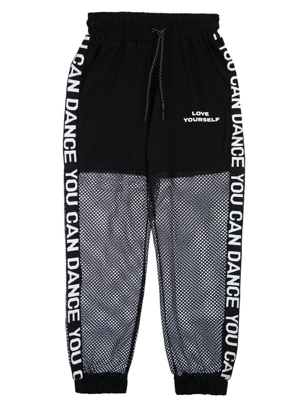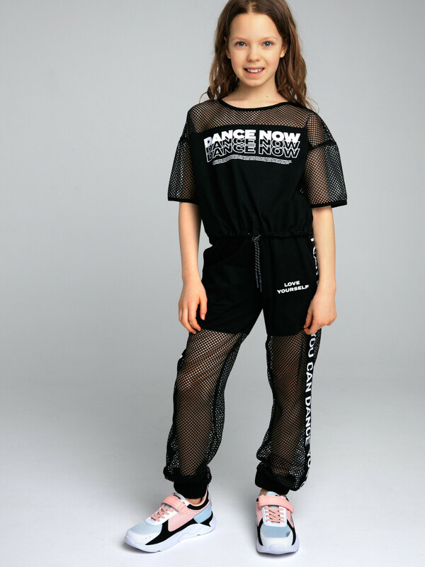 Производитель: PlayToday Брюки из комбинированного материала: трикотаж и сетка. Высокое содержание хлопка 95%, а благодаря наличию эластана в составе ткани изделие проще в уходе и держит форму. Эластичный пояс со шнурком. Манжеты в рубчик, карманы.