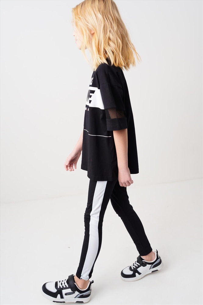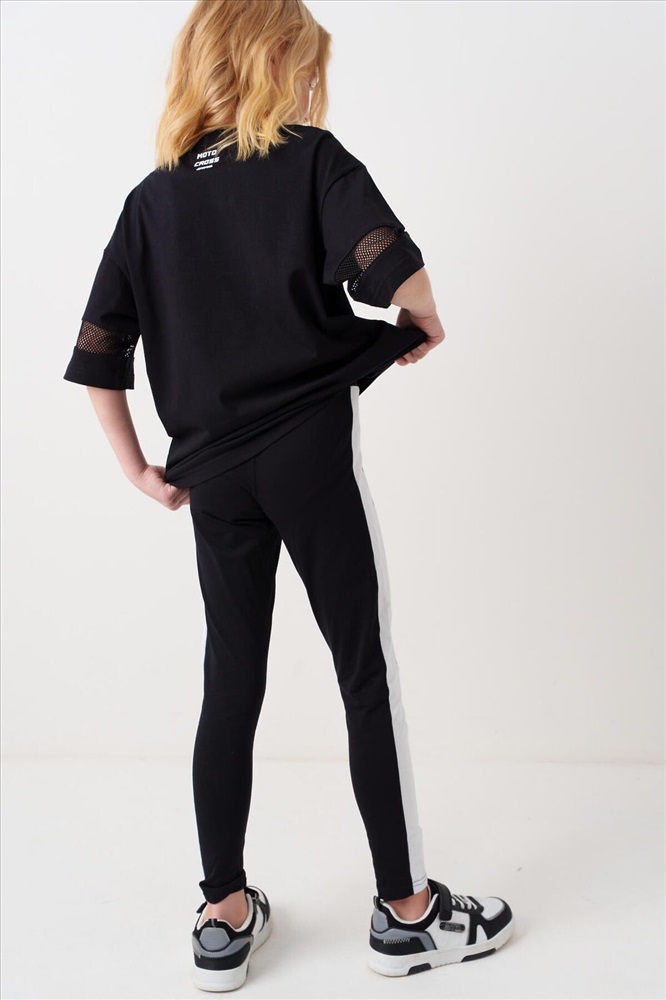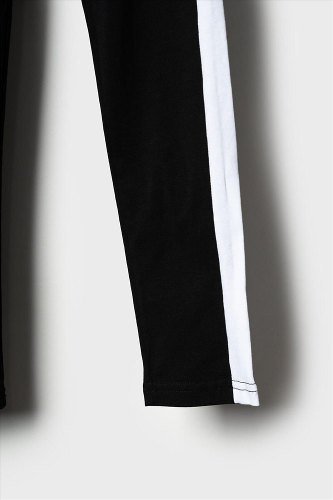 ID товара: 1240266 Состав: 95% хлопок, 5% эластан Сезон: Весна/Лето Черные легинсы для девочки подростка. Модель с белыми лампасами по бокам. Изделие выполнено из эластичного, хлопкового трикотажа, хорошо облегает фигуру и имеет высокую посадку. На талии — комфортный эластичный пояс. Длина — до щиколотки. Комментарии к товару