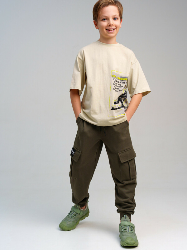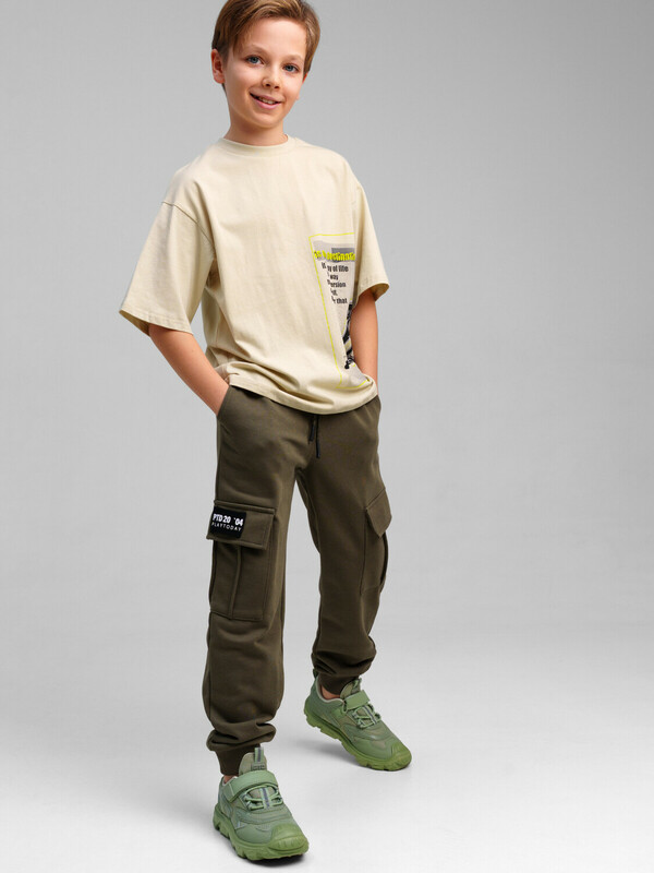 Производитель: PlayToday Брюки для мальчика подростка. Высокое содержание хлопка. Штаны на резинке со шнурком. Функциональные боковые и накладные карманы. Модель выполнена из качественного и приятного на ощупь трикотажа.