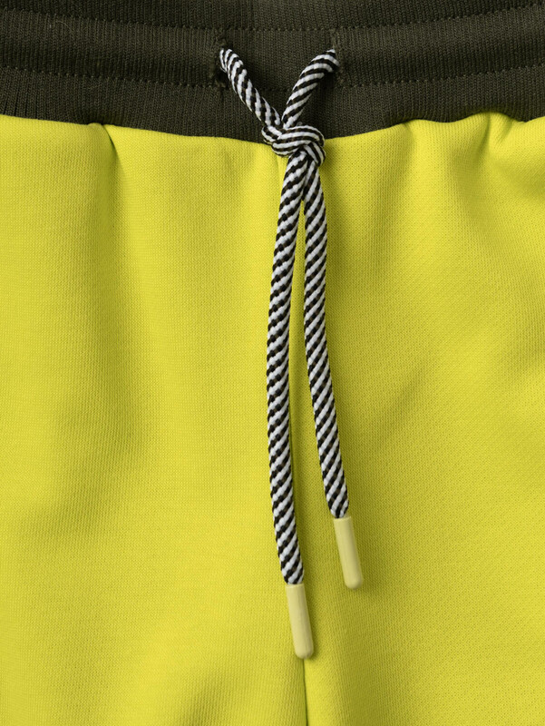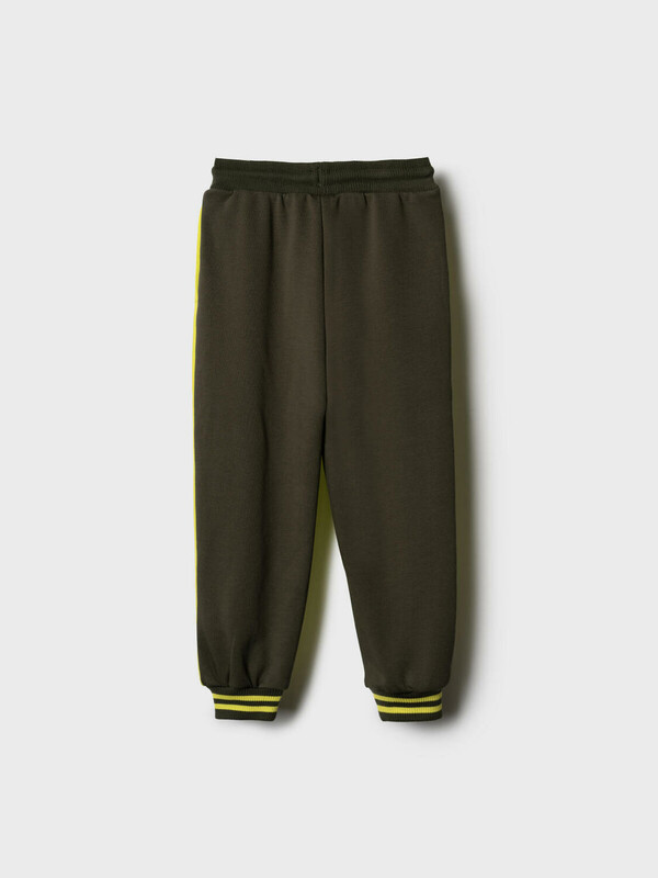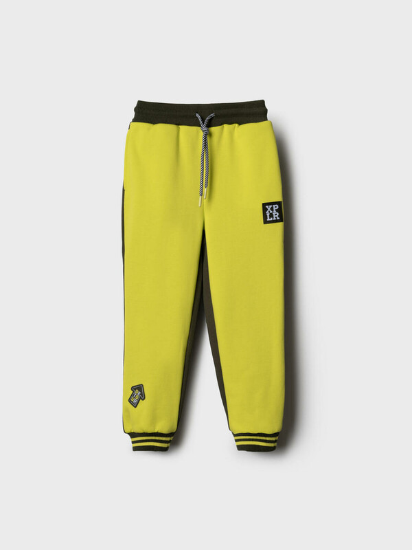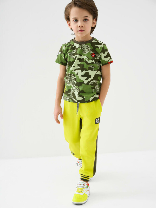 Брюки-джоггеры детские для мальчика. Выполнены из хлопкового трикотажа футер без начеса. Модель прямого кроя со средней посадкой на талии. Пояс выполнен на резинке, дополнительно регулируется шнурком. По бокам — удобные карманы. В нижней части брючин предусмотрены эластичные трикотажные манжеты для лучшей фиксации. Брюки украшены нашивками.