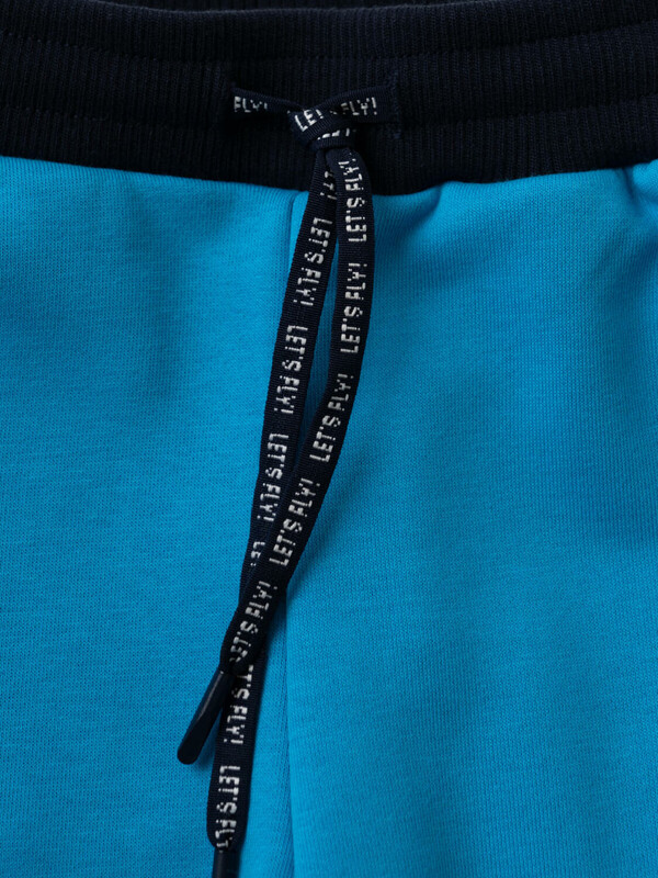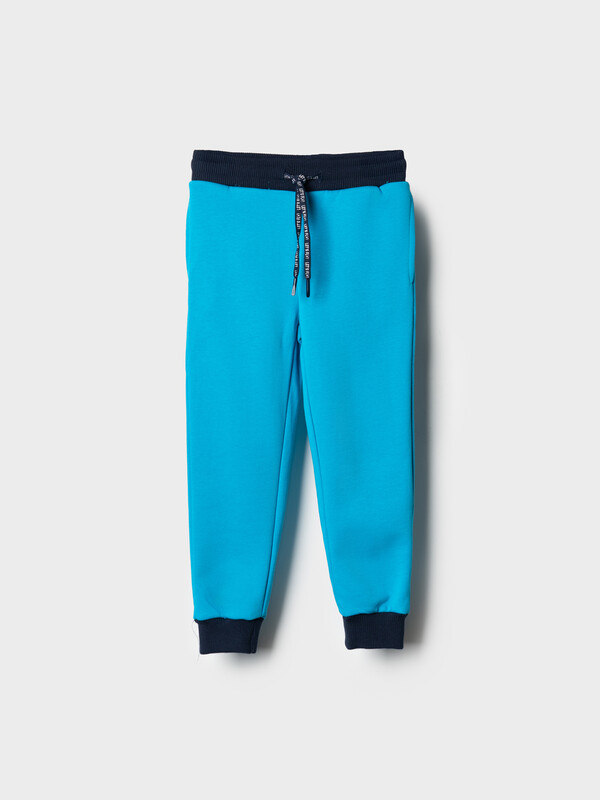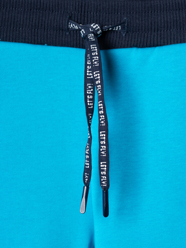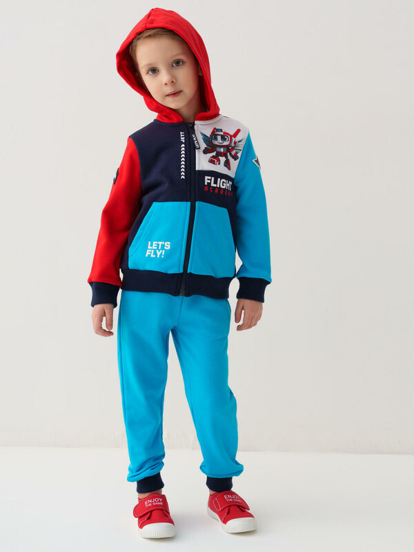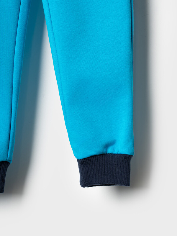Брюки-джоггеры детские для мальчика. Выполнены из хлопкового трикотажа футер без начеса. Модель прямого кроя со средней посадкой на талии. Пояс выполнен на резинке, дополнительно регулируется шнурком. По бокам — удобные карманы. В нижней части брючин предусмотрены эластичные трикотажные манжеты для лучшей посадки.