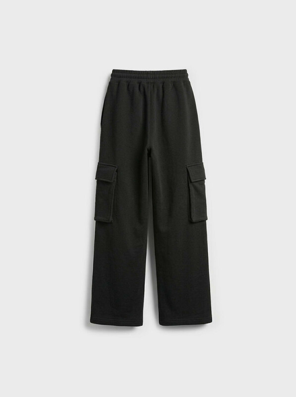 Трикотажные брюки прямого кроя для мальчика подростка. Изделие выполнено из мягкого хлопкового трикотажа. Пояс на резинке с удобной регулировкой шнурком. По бокам есть карманы, а на бедрах — карманы с клапанами на липучке. На одном из них — черно-белый шеврон с надписью. Благодаря комфортной посадке и натуральному составу ткани, модель удобна для повседневной носки.