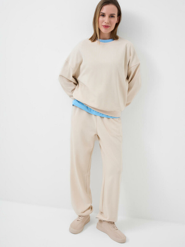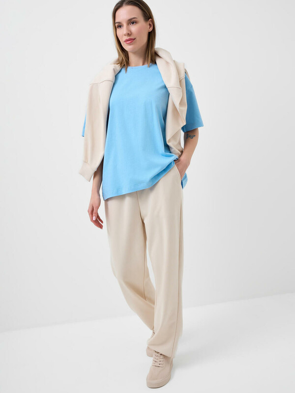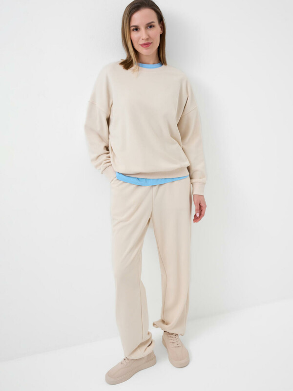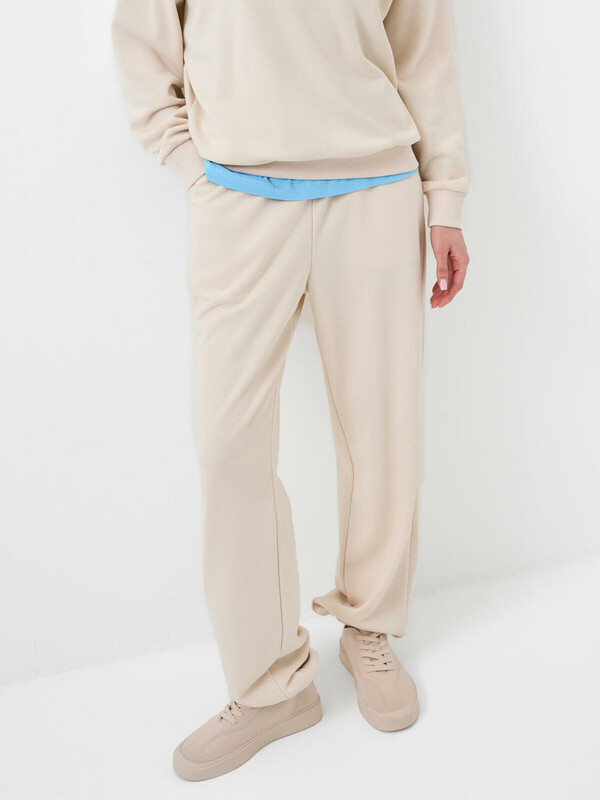 Производитель: PlayToday Спортивные базовые женские брюки. Выполнены из хлопкового трикотажа футер без начеса. Модель свободного кроя со средней посадкой на талии. Пояс на резинке, дополнительно регулируется шнурком. По бокам — удобные карманы. В нижней части брючин предусмотрена резинка для лучшей посадки.