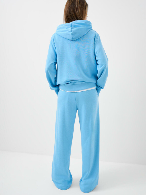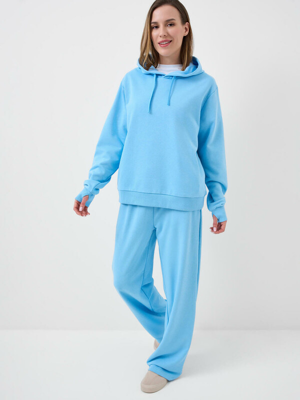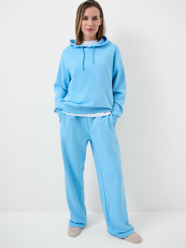 Спортивные широкие женские брюки. Выполнены из хлопкового трикотажа футер без начеса. Модель свободного кроя со средней посадкой на талии. Пояс на резинке, дополнительно регулируется шнурком. По бокам — удобные карманы.