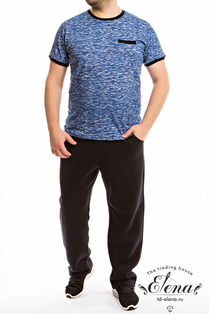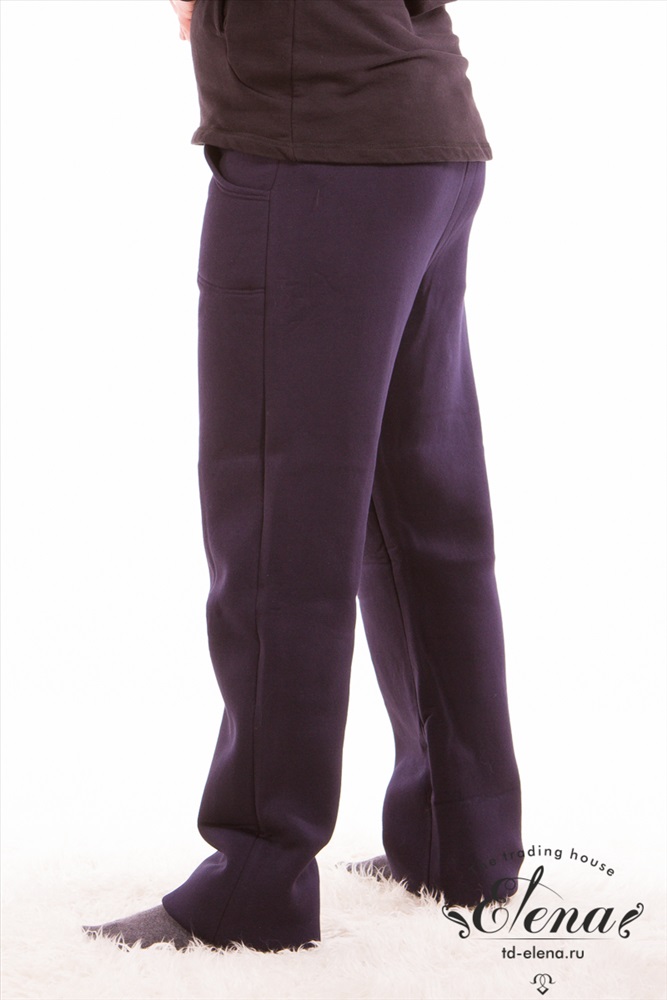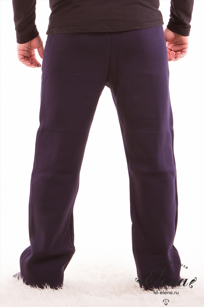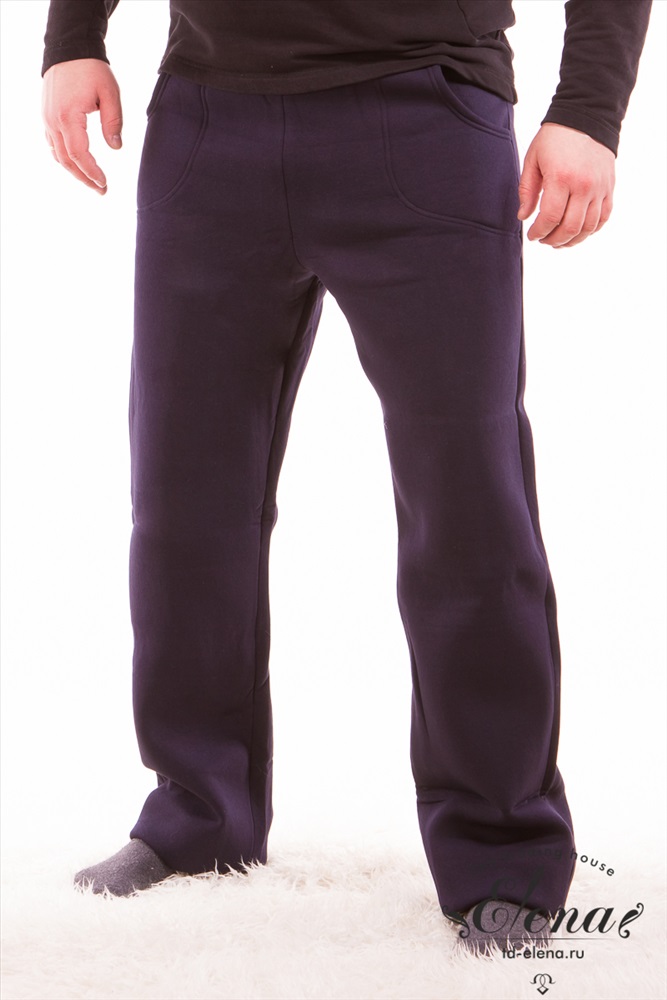 Цвет Номенклатуры: синий Мужские брюки с карманами по бокам выполнены из полотна с начёсом. Пояс брюк на резинке.