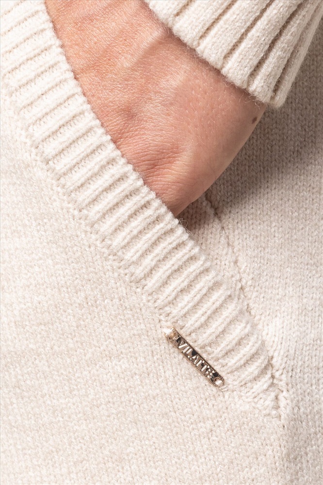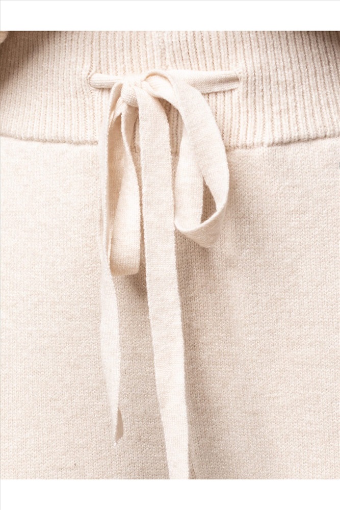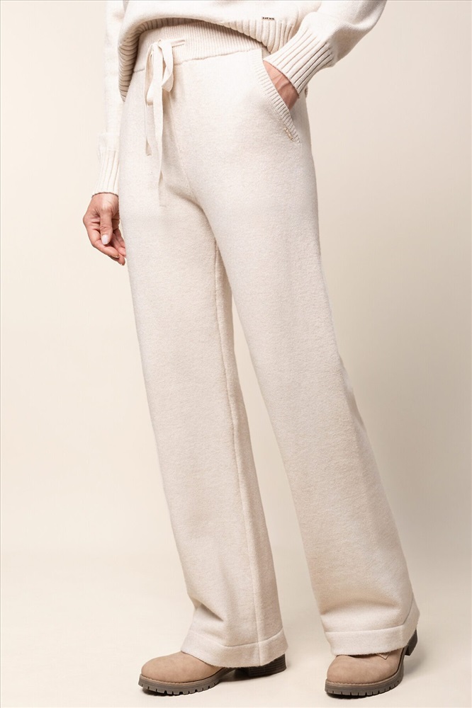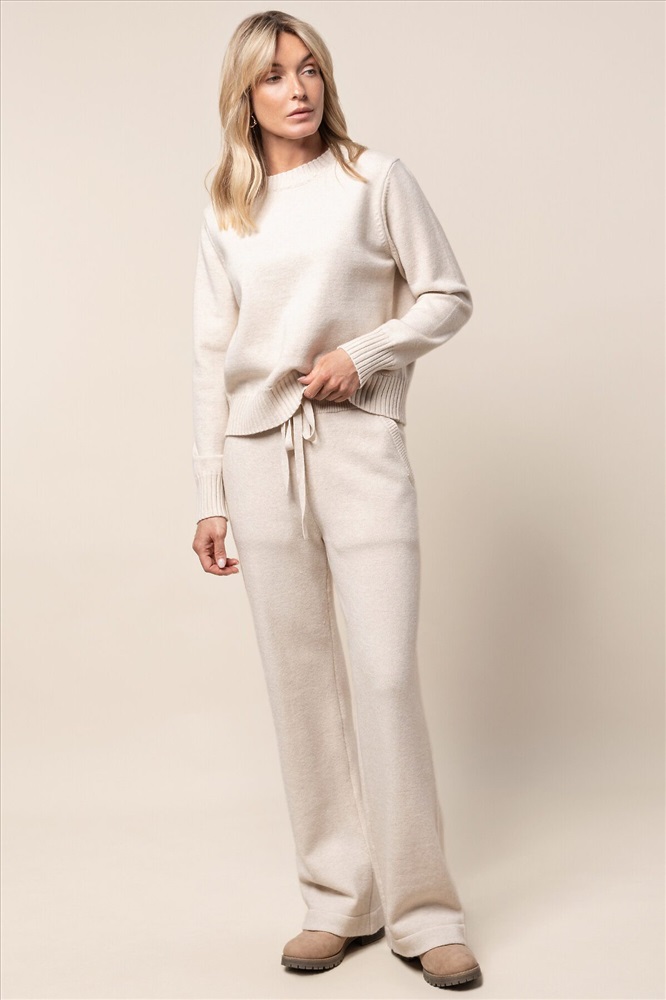 Брюки прямого силуэта выполнены из мягкой пряжи с кашемиром. Нежная пряжа приятно ощущается на теле, сохраняя комфортное тепло. Не колется и не перегревает. Пояс регулируется вязаным шнуром, позволяя носить изделие на талии или чуть ниже. Модель сочетается с любым верхом из коллекции с кашемиром.