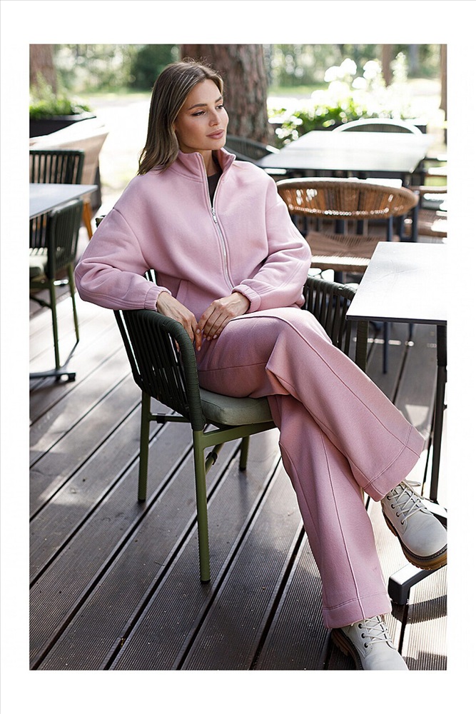 Теплые брюки прямого кроя с удобным поясом на резинке и карманами по бокам выполнены из премиального футера-трехнитки. Наличие эластана в составе гарантирует комфорт и долговечность изделия, материал хорошо пропускает воздух, позволяя телу дышать, а мягкий начес обеспечивает дополнительное тепло и комфорт в прохладную погоду. Эти уютные брюки пыльно-розового цвета созданы для вашего комфорта. Свободный прямой крой обеспечивает свободу движений и максимальное удобство в любых ситуациях, поэтому они подойдут и на большие размеры, а так же на высокий или низкий рост. Фигура подчеркивается, а силуэт визуально вытягивается за счет кроя палаццо и застроченных декоративных стрелок. Вы можете создать стильный образ на каждый день в сочетании с любой футболкой нашего бренда, худи D49.102 и бомбером D49.103. В повседневных трикотажных брюках вы будете чувствовать себя комфортно и уверенно, наслаждаясь каждым моментом дня.