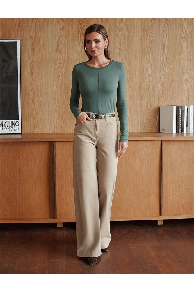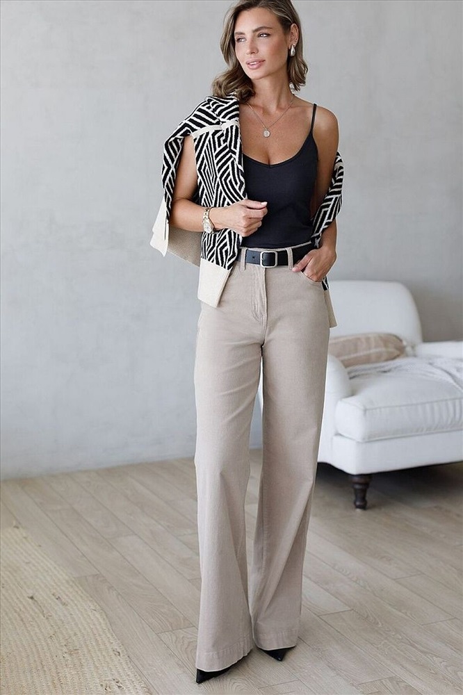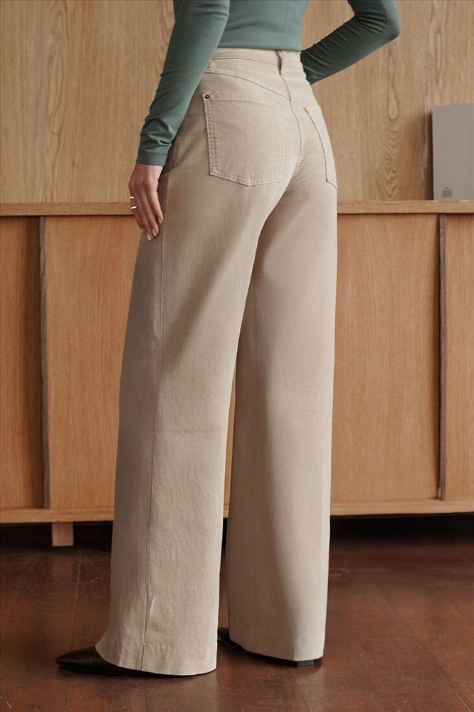 Брюки свободного кроя «трубы» выполнены из мягкого хлопкового микро-вельвета с добавлением эластана. Изделие комфортно садится по фигуре и не сковывает движения. Модель с пятью карманами, как у джинсов дополнена высококачественной фурнитурой с фирменным логотипом бренда. Идеально впишутся в повседневный образ, со свитером крупной вязки, курткой-косухой, ботинками на грубой подошве, челси и казаками.